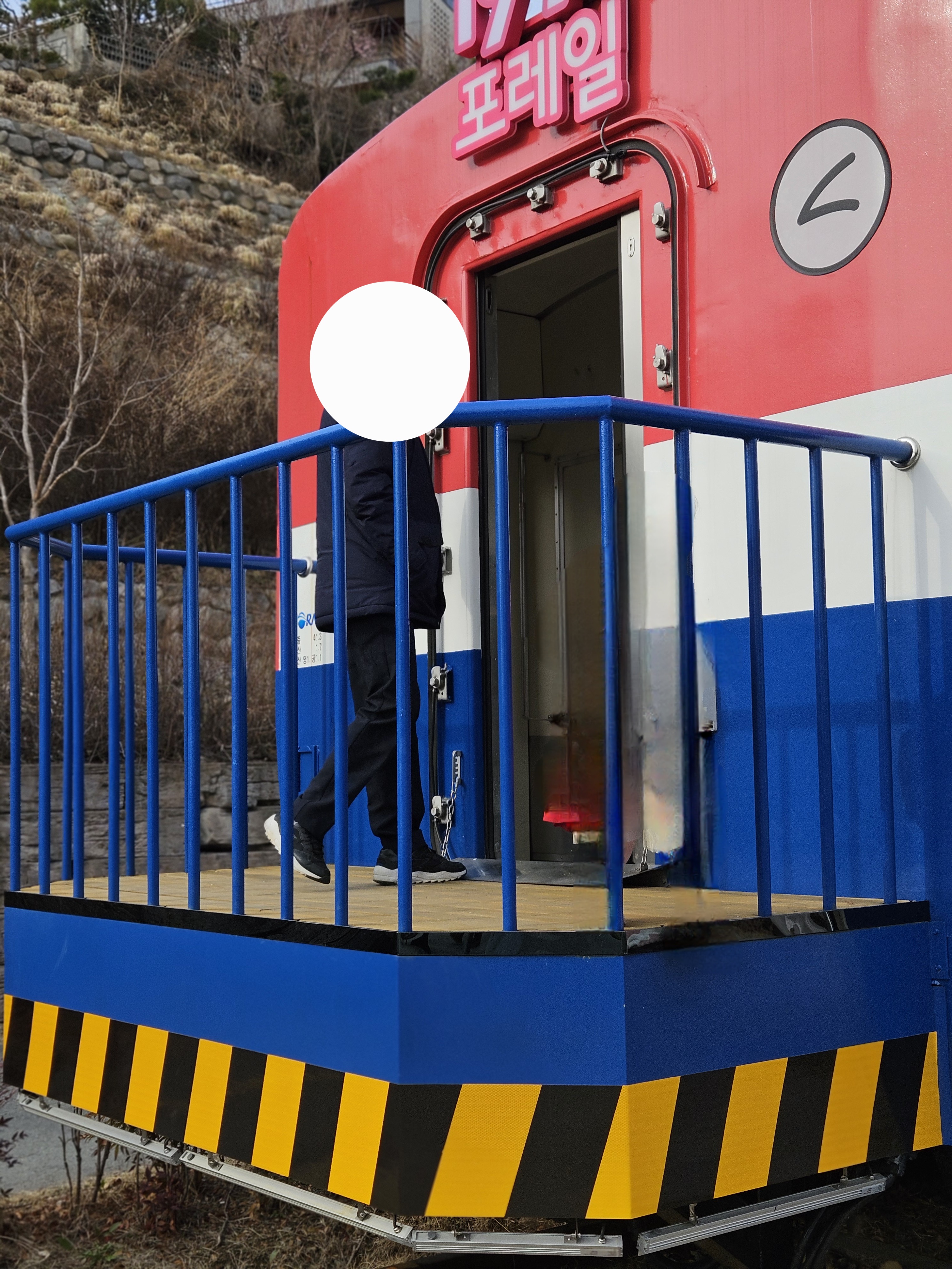 기차 난간에 매달려서