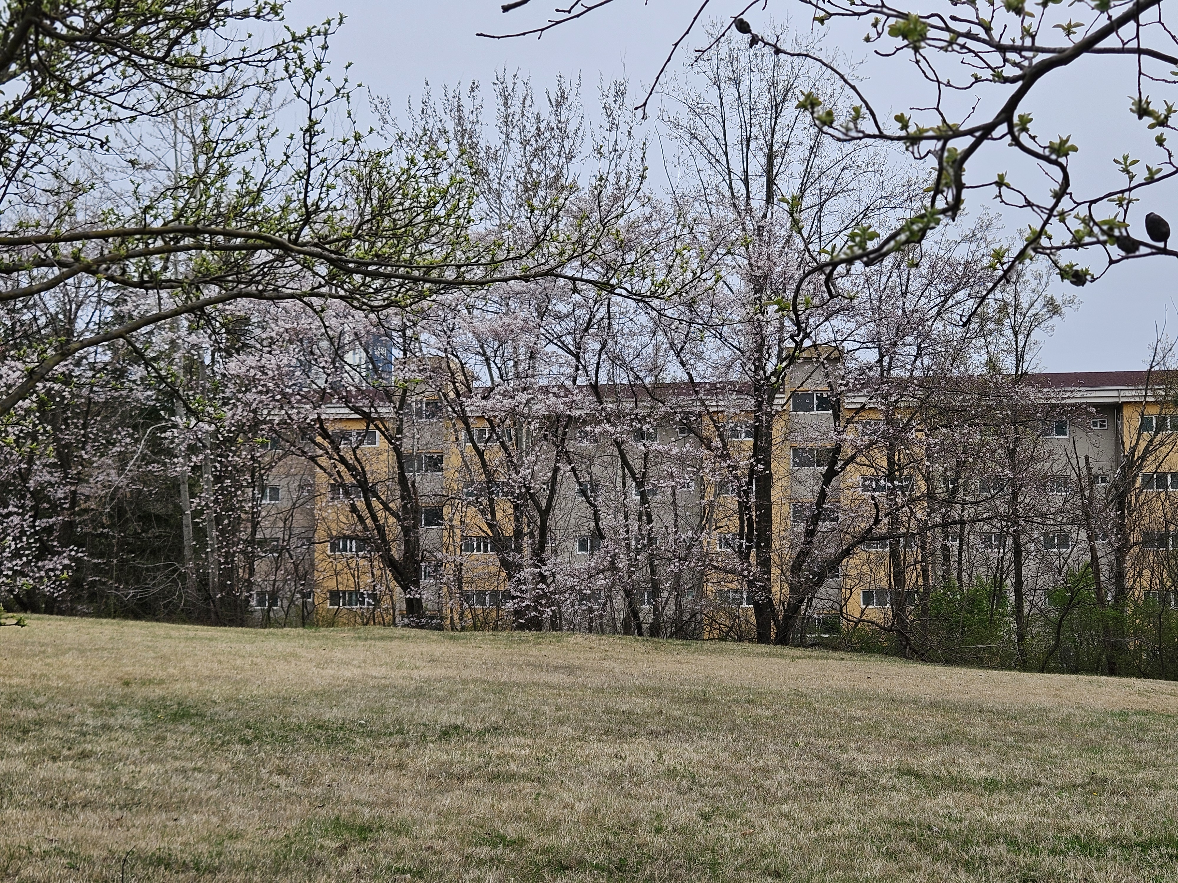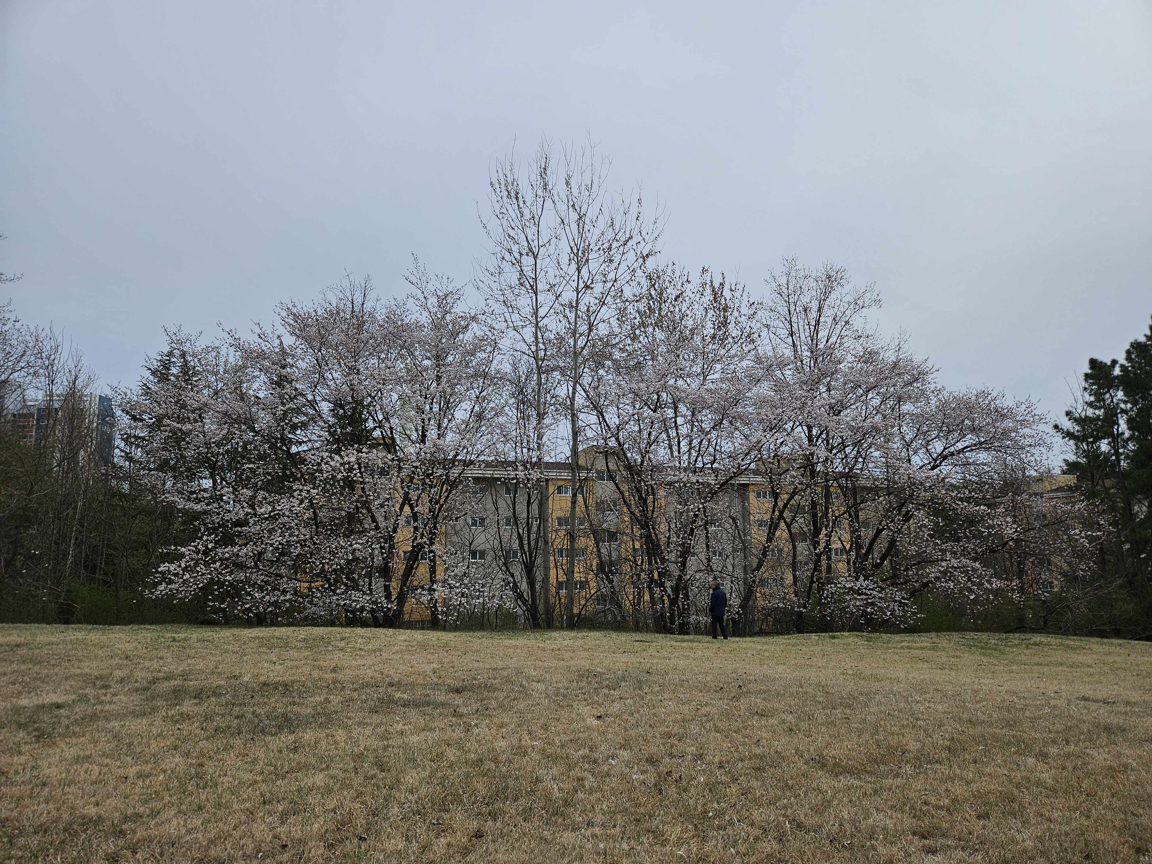 올라가는 길 아파트쪽 공터에 낮은 벚꽃이 있어