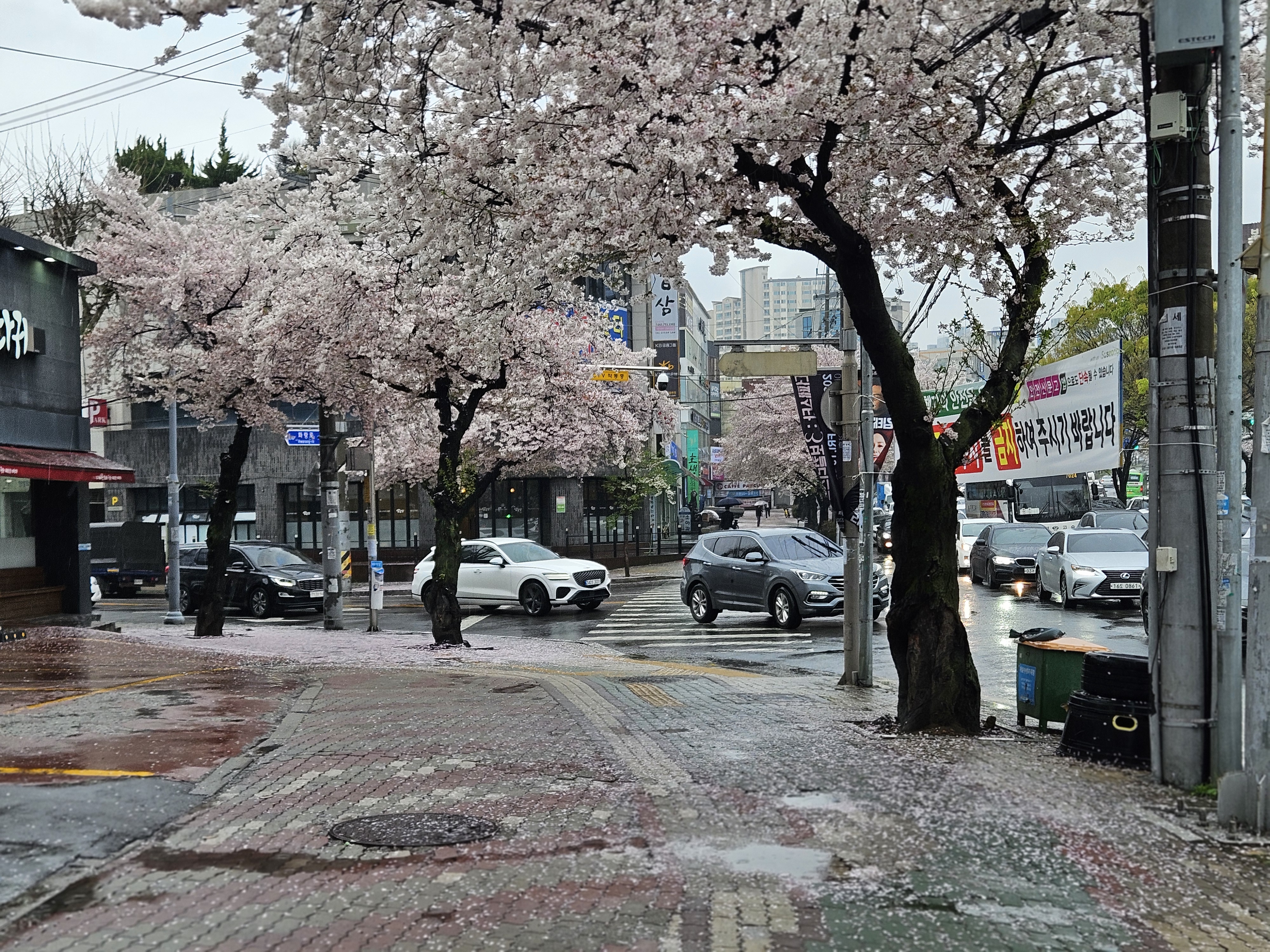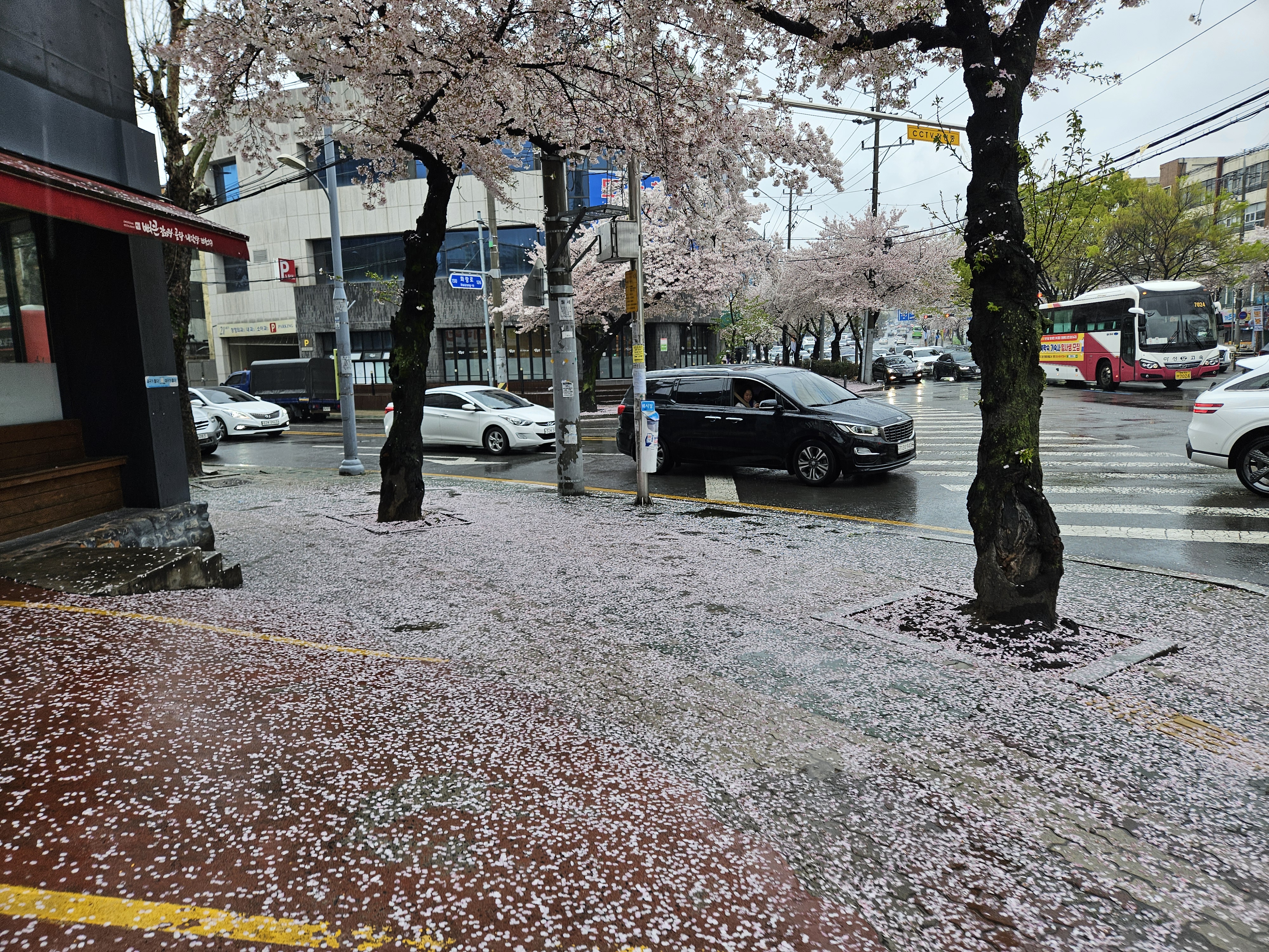 mbc네거리에 이르는 화랑로 양쪽으로 벚꽃나무가 가득.