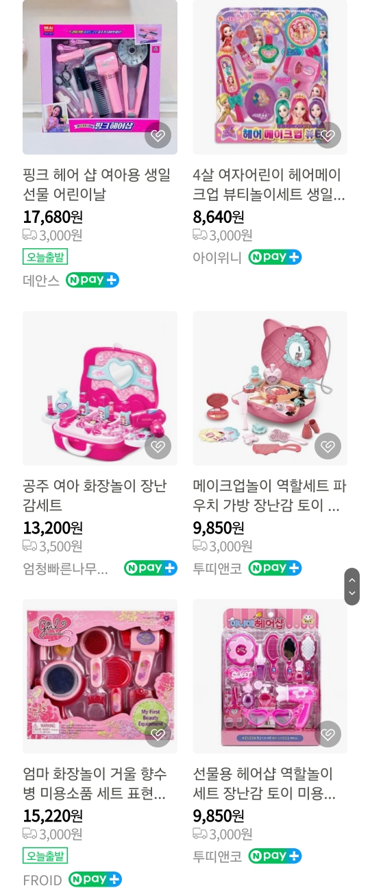 일반 메이크업 장난감 가격과 구성을 다시 보니