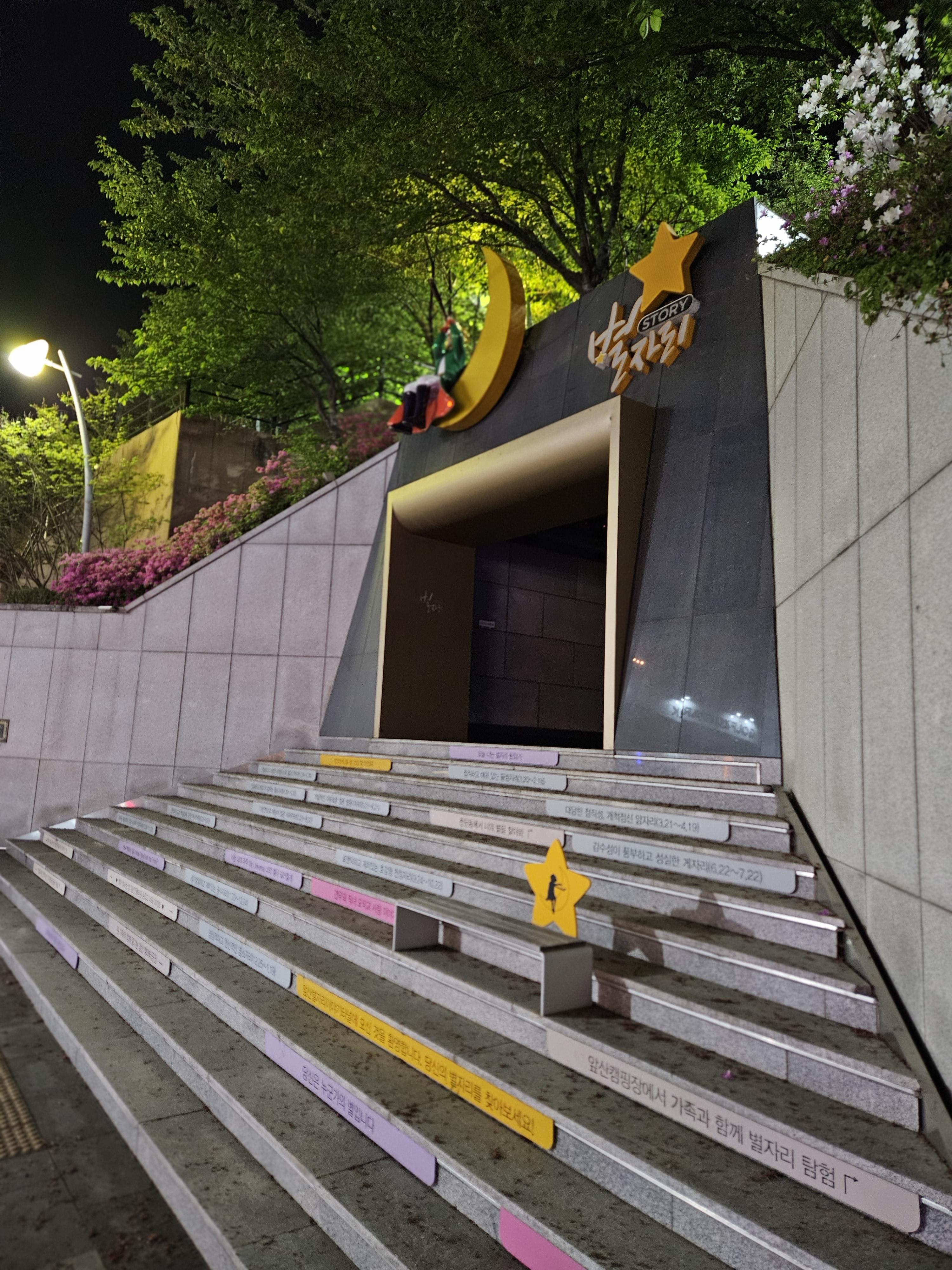 다시 밖으로 나와 별자리터널 양옆의 계단을 올라와봤어요. 요렇게 계단을 올라오면 도보와 이어집니다.