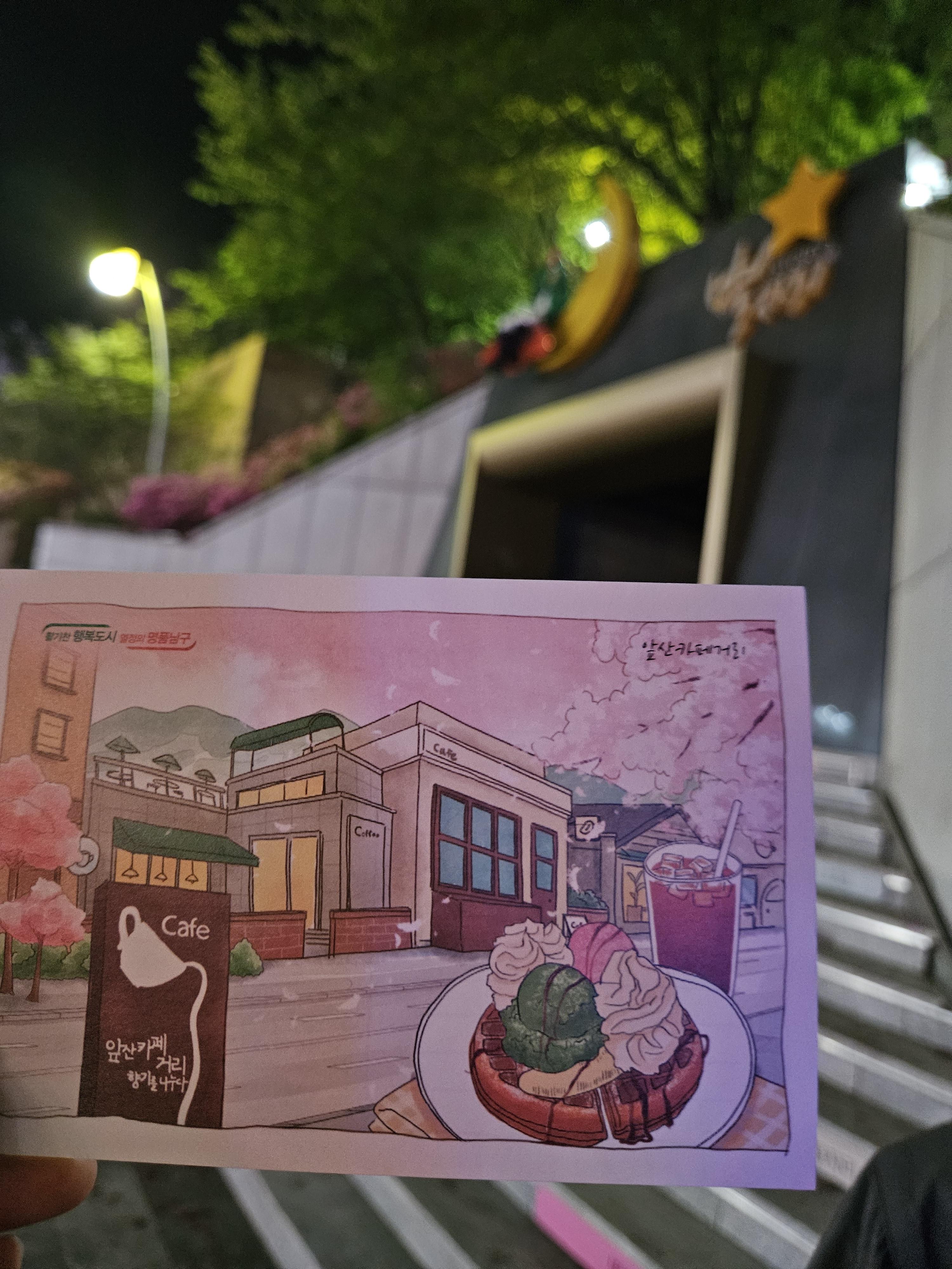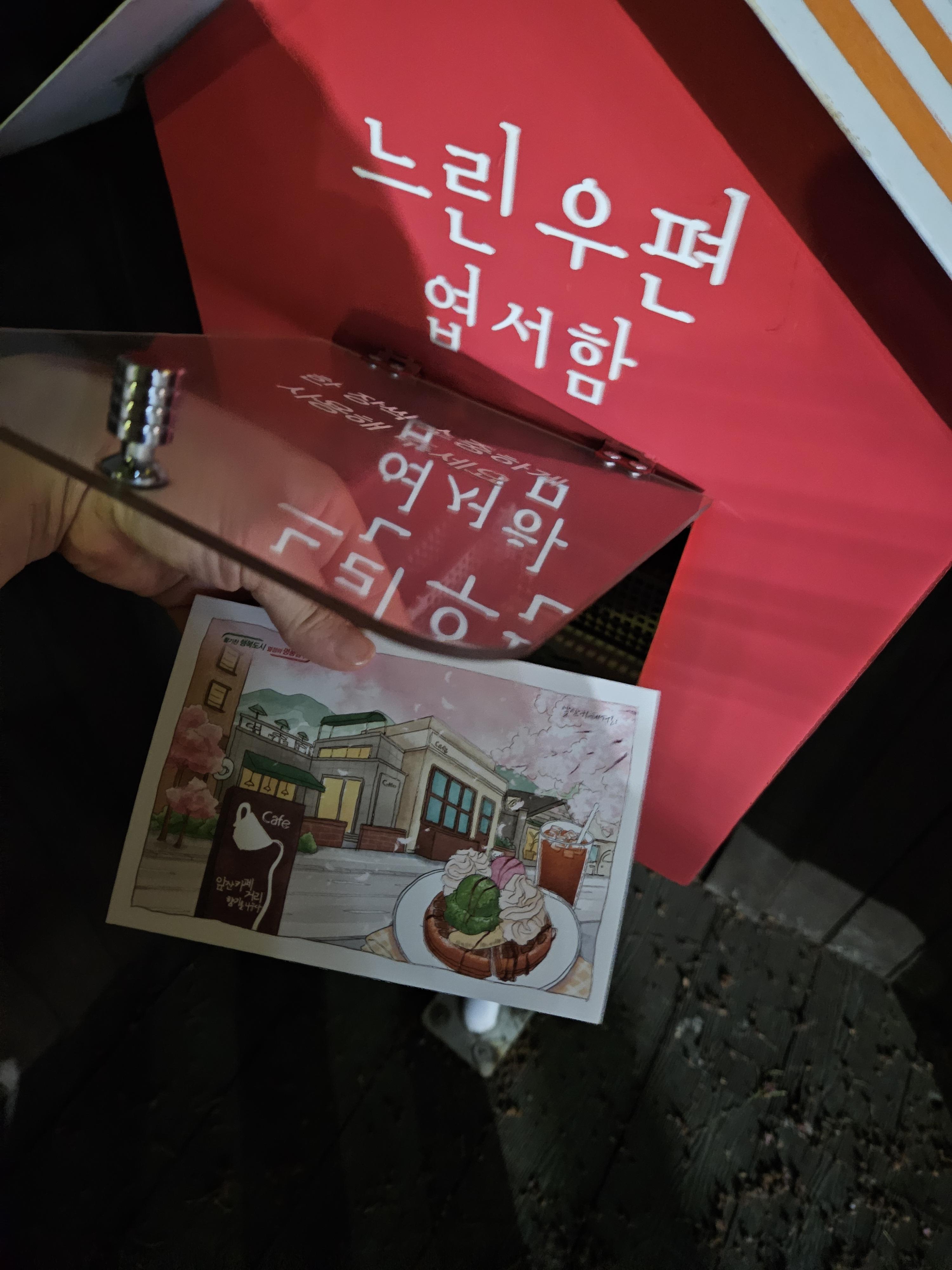 엽서함에는 요렇게 앞산카페거리 일러스트가 담긴 엽서와 볼펜이 들어있어요!