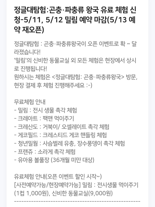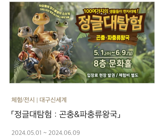 정글대탐험:곤충·파충류 왕국 유료 체험 신청<5/15 예약 마감>