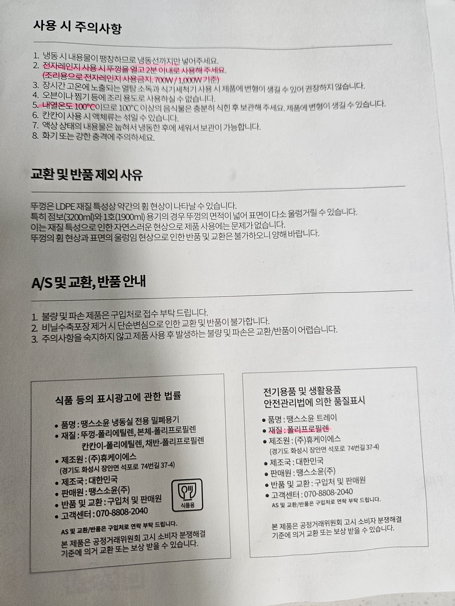 - 냉동 tip. 냉동 시 내용물이 팽창하므로 냉동선까지만 넣기