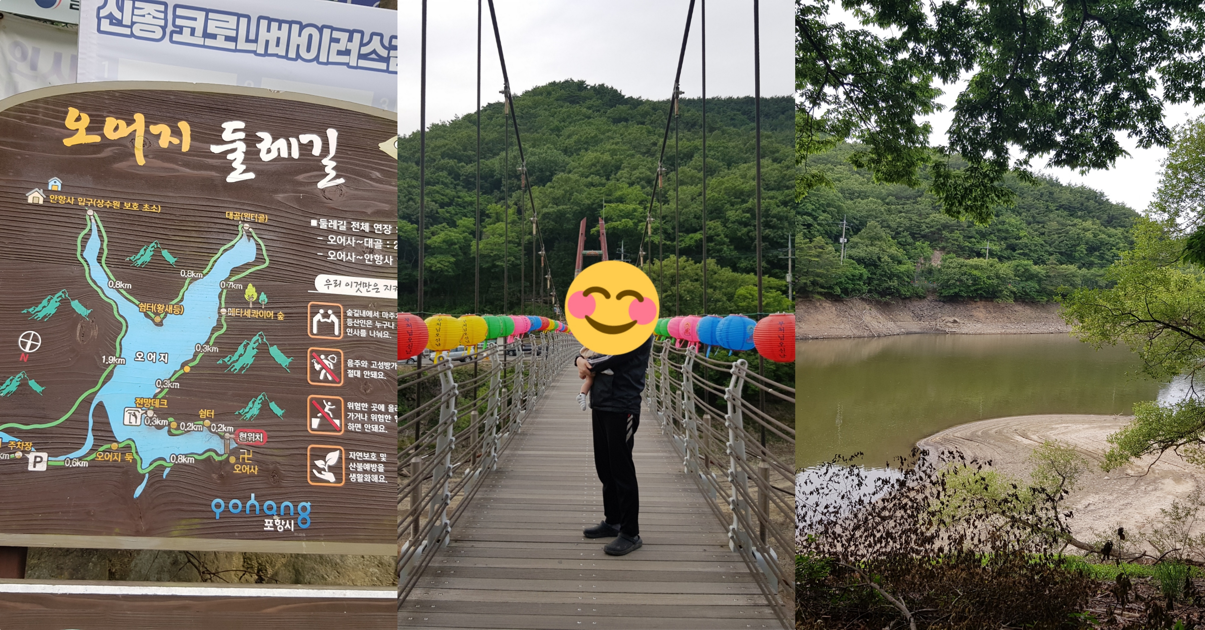 부처님 오신 날에는 사람이 많을 것 같아서 못 가고, 윤달 부처님 오신 날이 있더라고요? 2019년은 5월 30일이었습니다! :) 오어사 구경도 하고, 아기 건강하게 잘 크게 해 주십사 부처님께도 인사드렸네요! 오어사 내부는 유모차 또는 아기띠로(유모차를 밀면 먼지가 생길 것 같은 흙바닥이라 되도록 아기띠 추천합니다), 출렁다리 너머 오어지 둘레길은 아기띠로 둘러보시길 추천합니다. 봄 오어지 둘레길은 분홍 진달래가 가득합니다:)