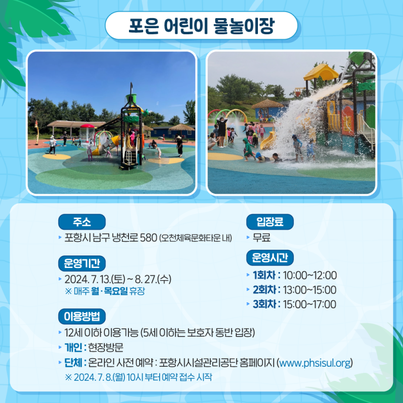 [포항물놀이터 모음] 포항 어린이물놀이장 6곳