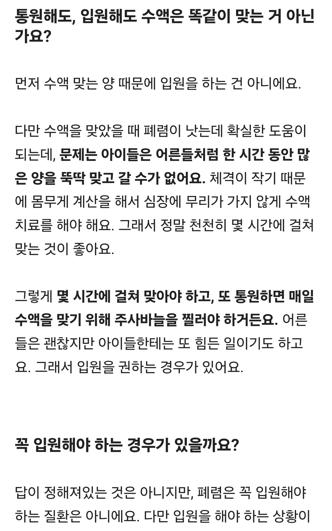 통원해도 입원치료와 속도가 비슷하기도 한다.