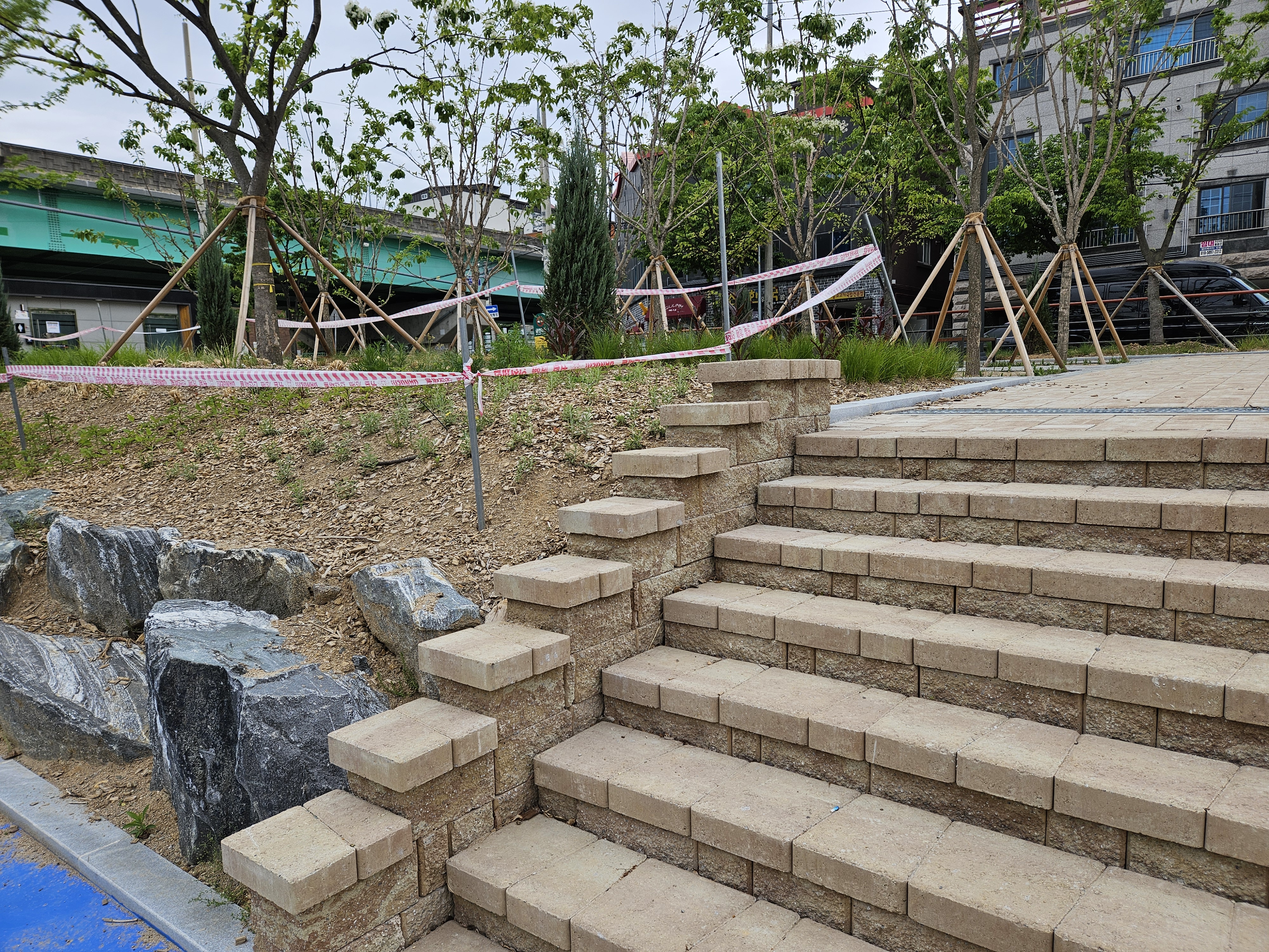 나무나 식물이 심기는 등 화단이 조성되고 있네요.