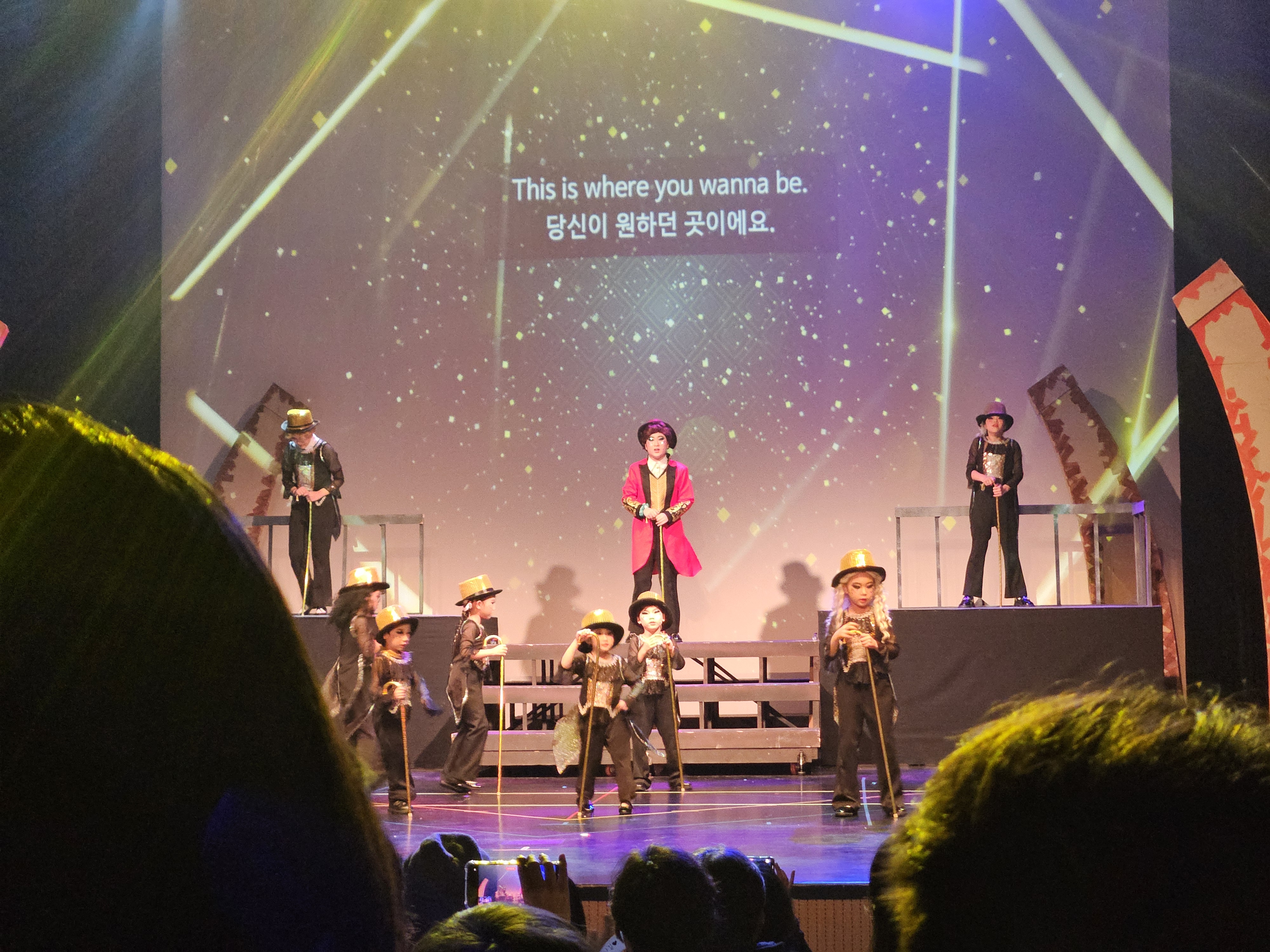 화면처럼, 무대 중앙에 영어 대사와 한글 번역도 나와서 어른들이 극 줄거리를 이해하기에는 무리가 없었는데,