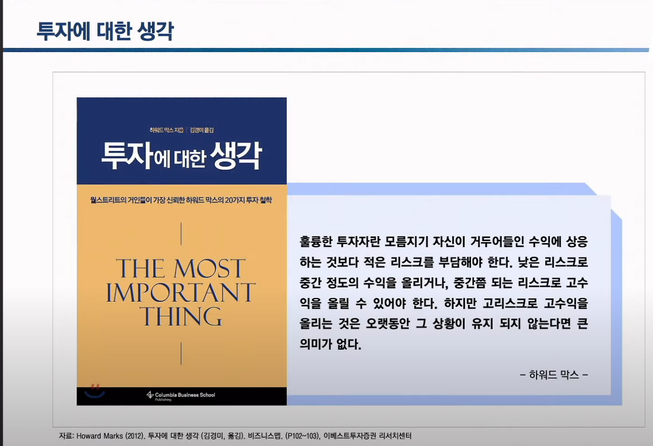 하워드 막스의 책을 자주 읽고 있다. 생각을 정리하기 위해서