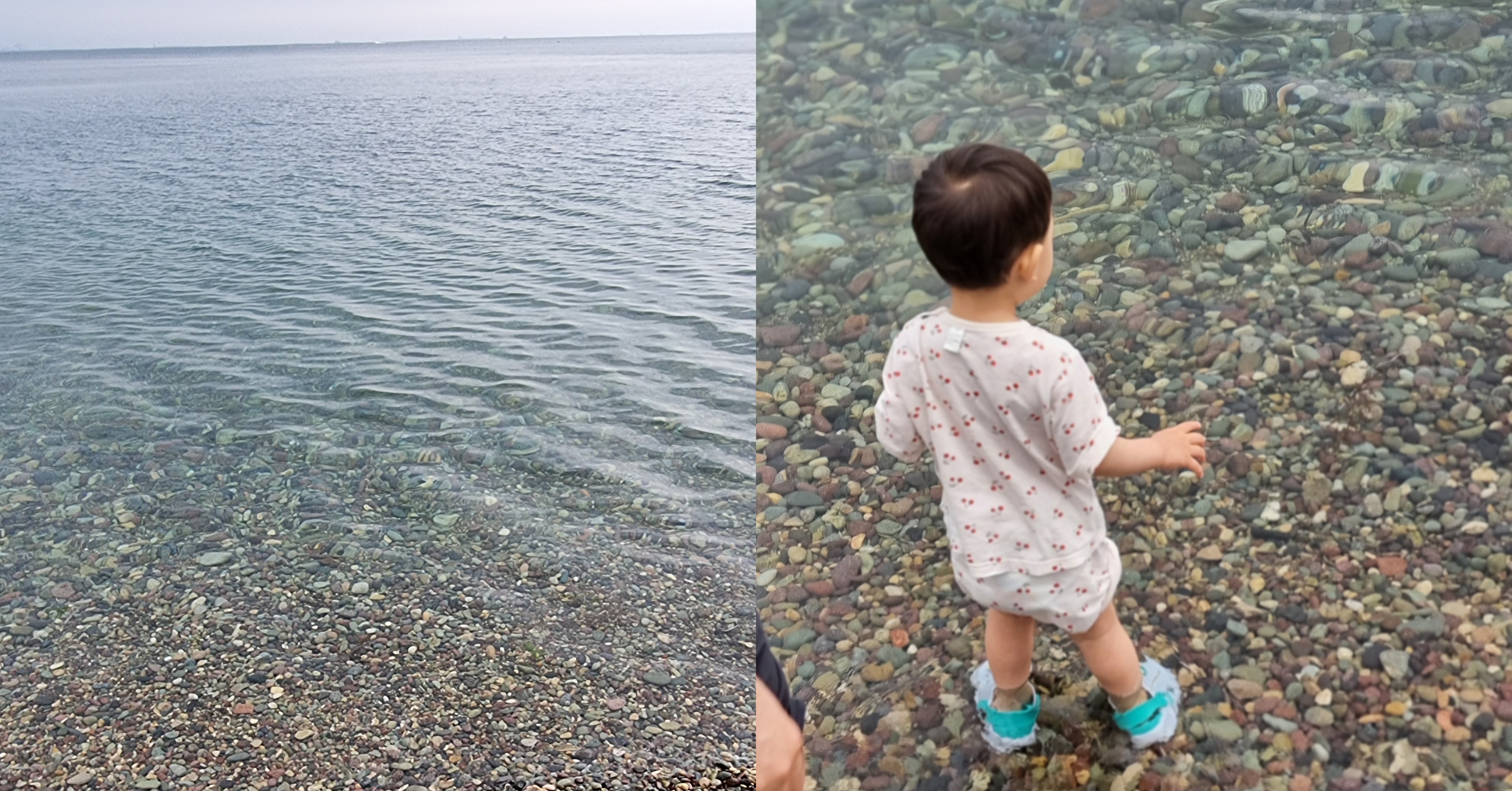 자갈 해수욕장입니다. 물빛도 맑아 보여요!