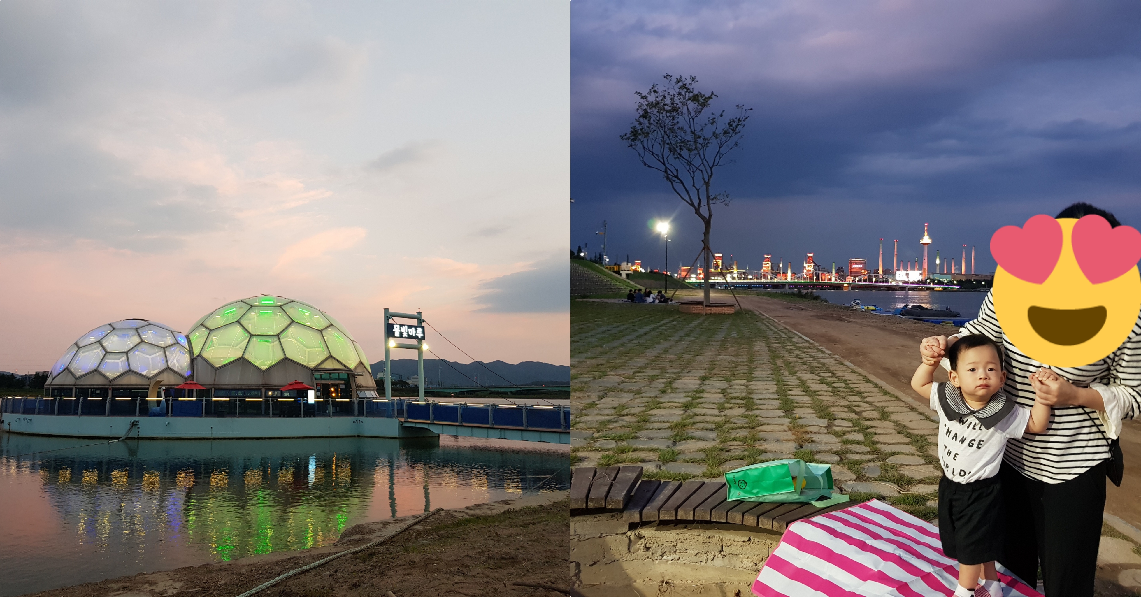 해 질 녘에 가셔서 해 질 녘 하늘과 깜깜해진 밤 배경의 포스코 야경 감상이 가능합니다. 물빛 마루의 독특한 외관을 구경하는 재미도 쏠쏠합니다. 넓은 야외라 아이들 자유롭게 돌아다니기 괜찮아요. 강길을 따라 산책길이 잘 조성되어있습니다. 길 위로 산책하시는 분들 계셨어요!