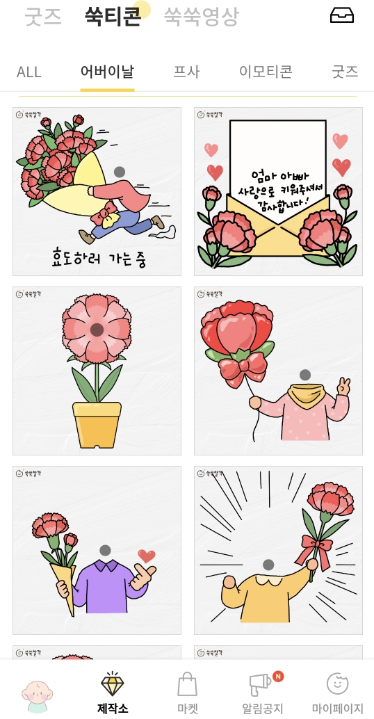<쑥쑥찰칵> 어플의 쑥티콘 어버이날 주제 추천!