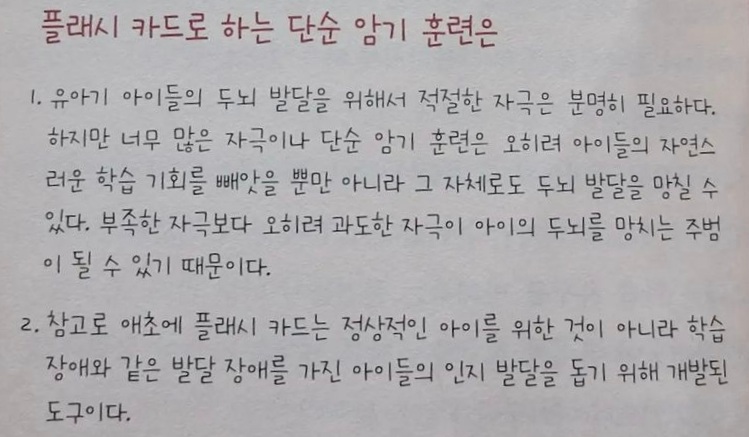 ※ 참고 : 낱말카드 교육의 주의점