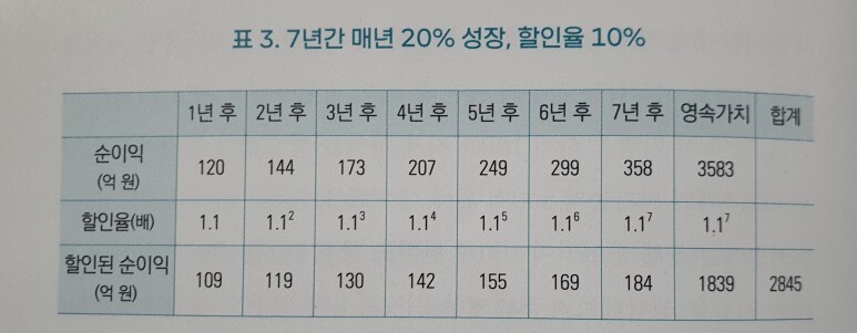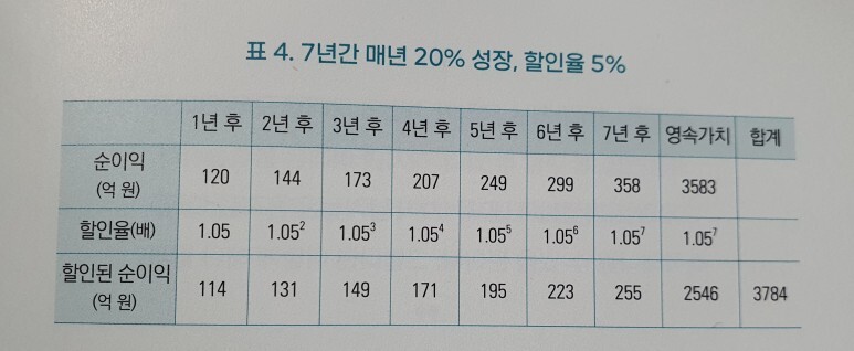 다른조건은 동일하고 향후 7년간 매년 20% 성장하는 기업