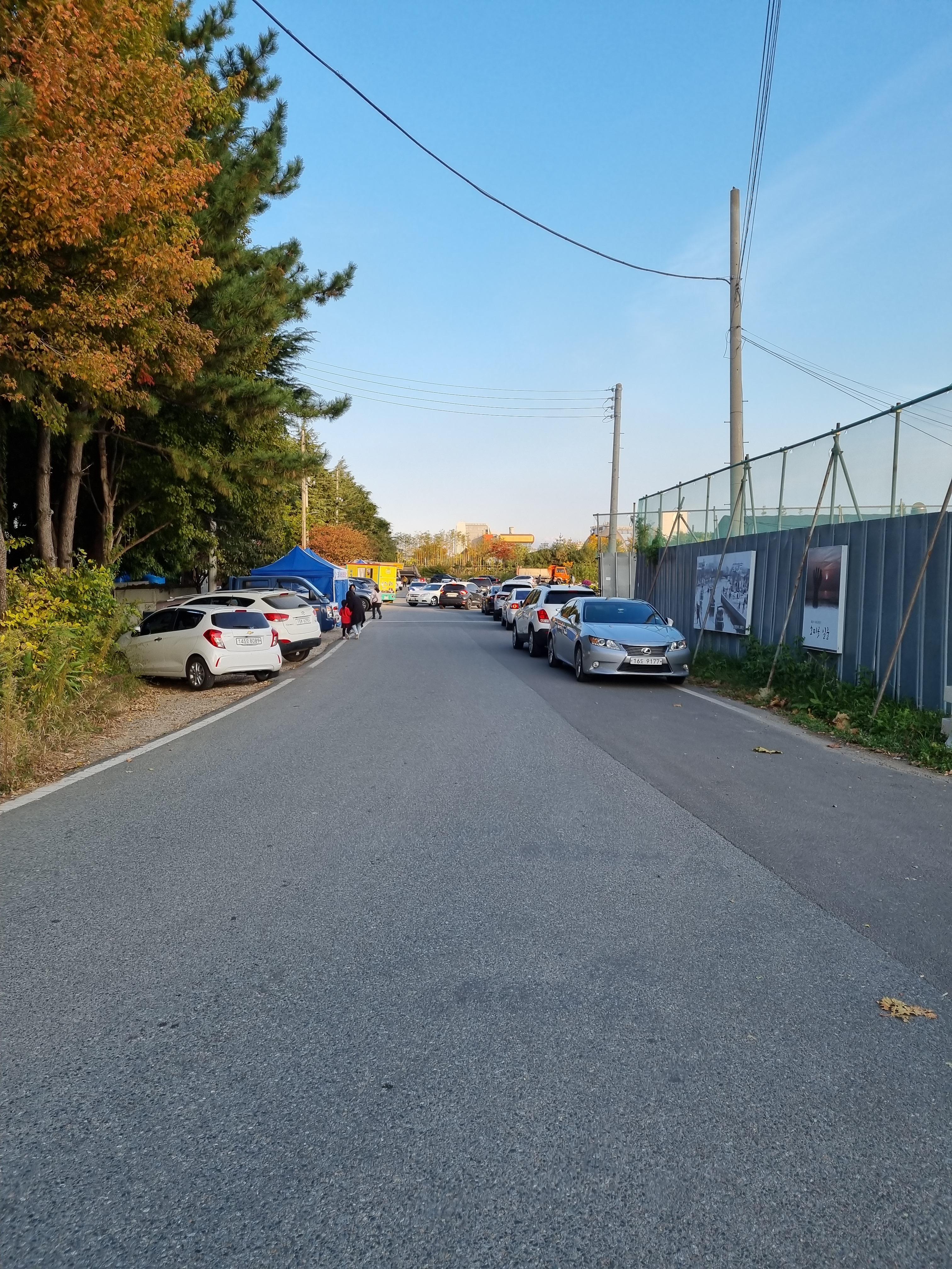 국화밭에 들어서는 길입니다. 앞으로 가셔서 오른편이 국화밭입니다. 국화가 한창이라 오신 분들이 많네요~ 주차는 아래 사진처럼 길가에 하시면 됩니다!
