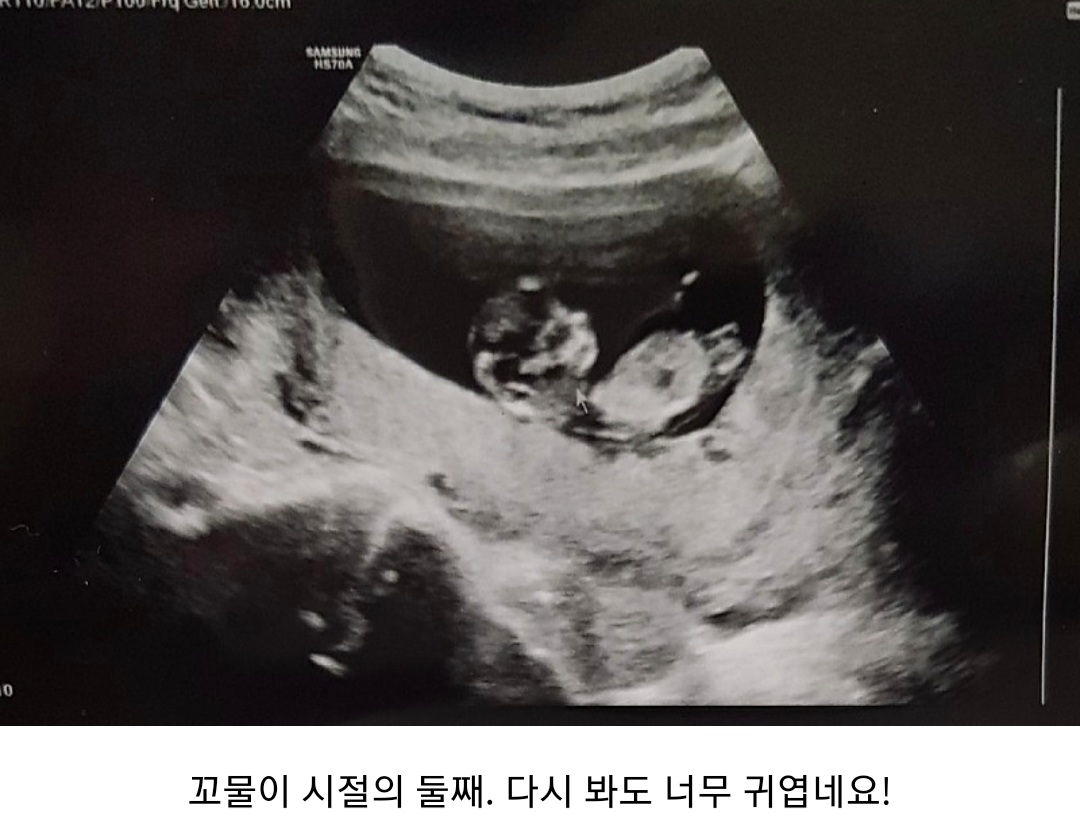 둘째 진료 때 두어번 첫째 아이도 함께 가서 초음파사진으로 둘째를 만났습니다. 첫째가 아직 3살 밖에 안데다 깜깜한 초음파실이 무서웠는지 간간히 칭얼거리긴 했지만, 이남희 선생님, 간호사님께서 첫째도 너무 귀여워해주시고 흔쾌히 초음파 사진을 함께 볼 수 있게 해주셔서 첫째도 귀한 경험을 하였네요!