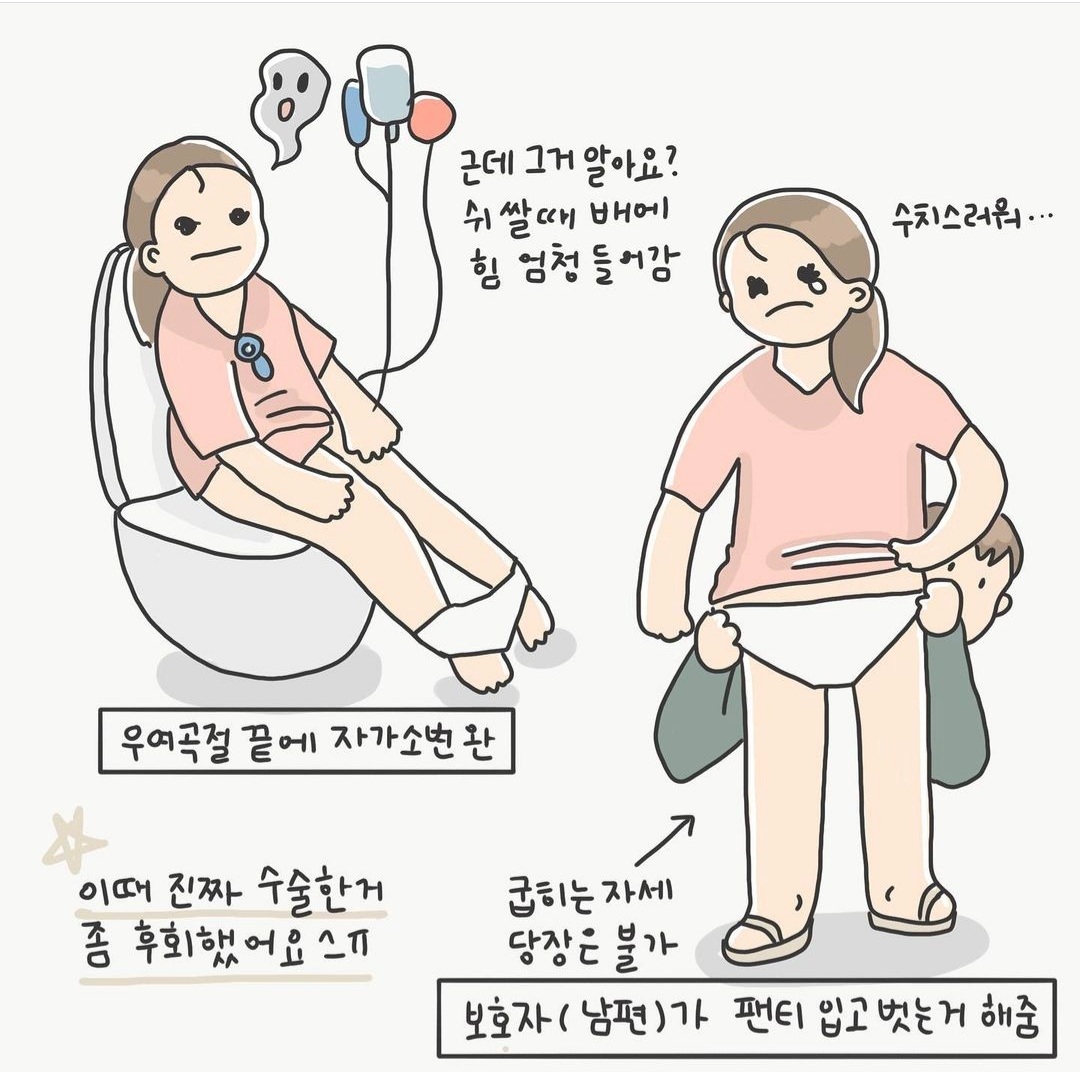 혹시 출산(제왕절개)을 앞두신 분이라면 보시고 미리 마음의 준비를 해두세요! 귀여운 일러스트로 세부적인 알맹이들이 다 설명되어 있어요! 추천👍