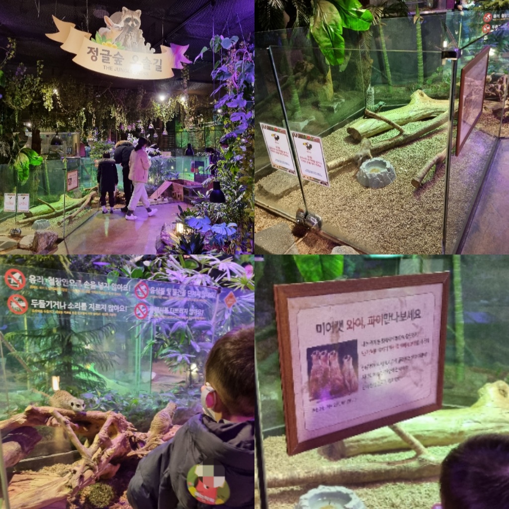 <정글숲 오솔길>에는 통로를 따라 오다니는 다람쥐, 너구리 등 각종 동물들을 관찰할 수 있었네요~