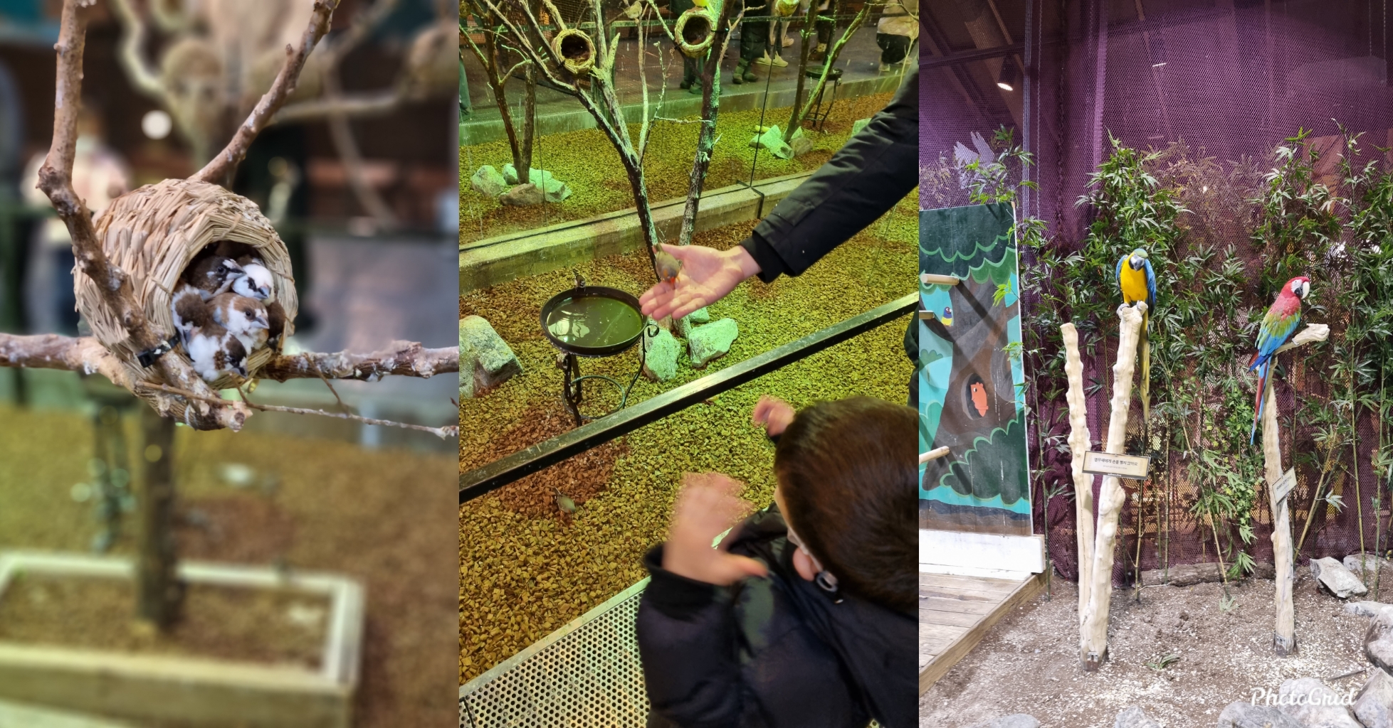 입구에서 받은 새모이를 손바닥 위에 올려 직접 새모이를 줄 수 있는 장소. 바로 앞에서 날아다니는 예쁜 새들(카나리아류) 을 볼 수 있어 어른들도, 저희 아가도 가장 좋아했던 체험장소! (*코로나 및 해당 체험에서 사람들이 몰리는 것을 방지하기 위해 한 번에 4팀이하로, 팀당 10분 이하로 머무를 수 있다고 안내되어 있었네요)