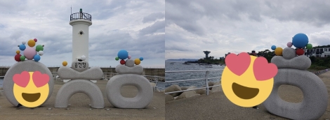 ㅇㅊㅎ 이라는 귀여운 자음 글자 구조물과 등대요!