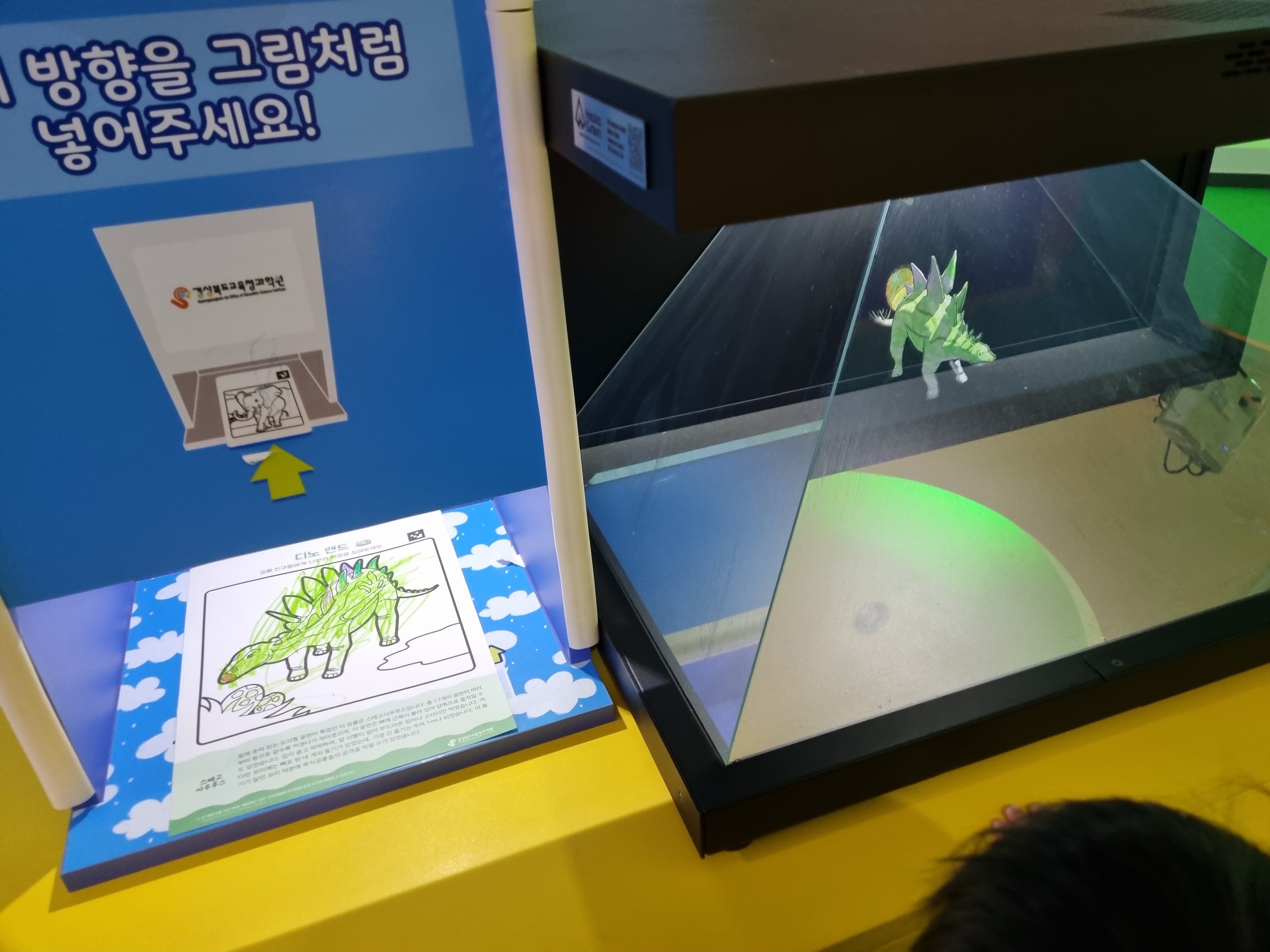 2) 색칠한 공룡 그림을 빔으로 쏘아주는 체험 공간