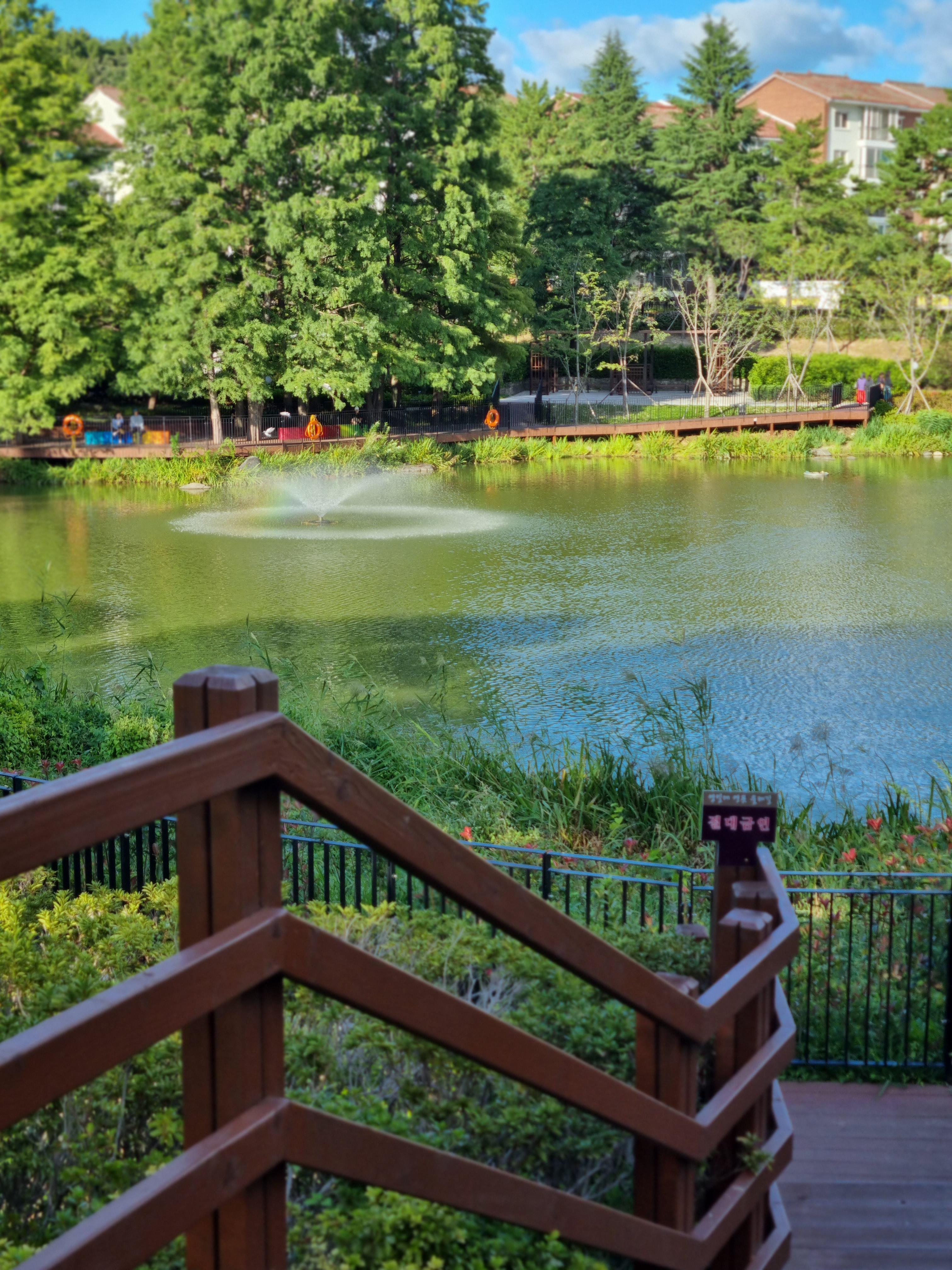 영일대 호수?연못? 데크가 바로 옆에 있어