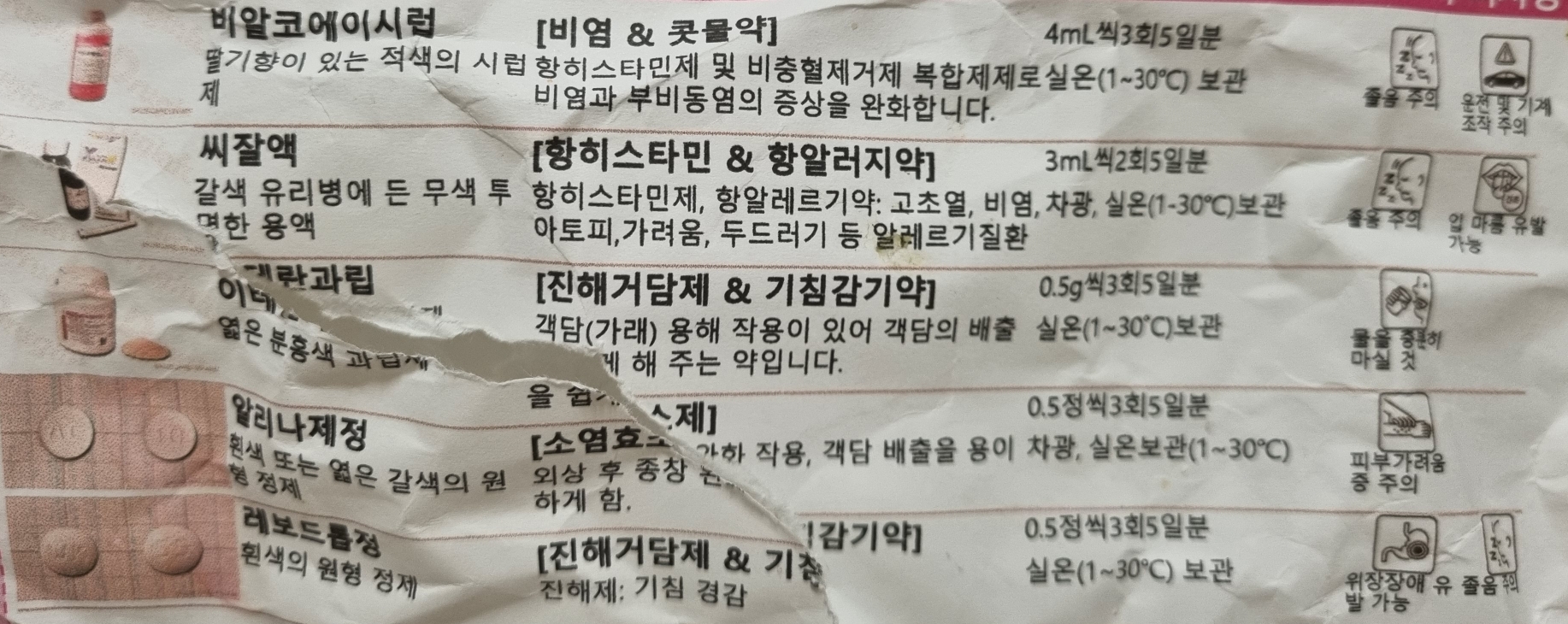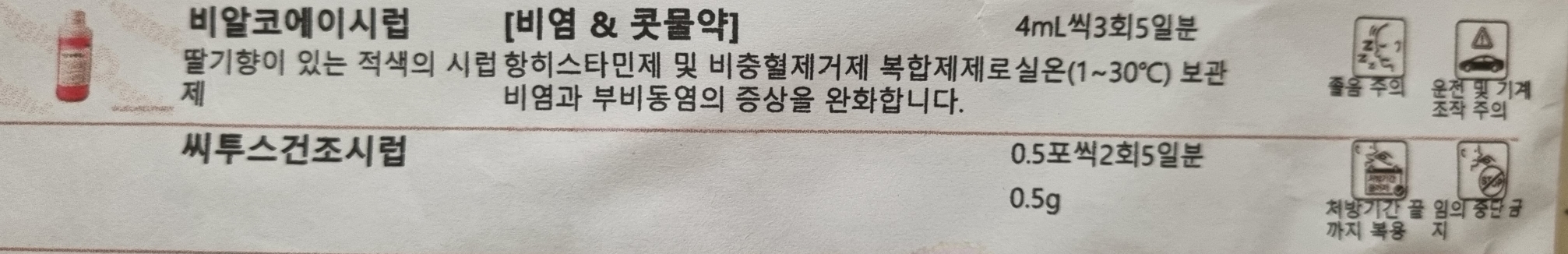 콧물과 기침이 심했는지 항생제 바로 처방받음.