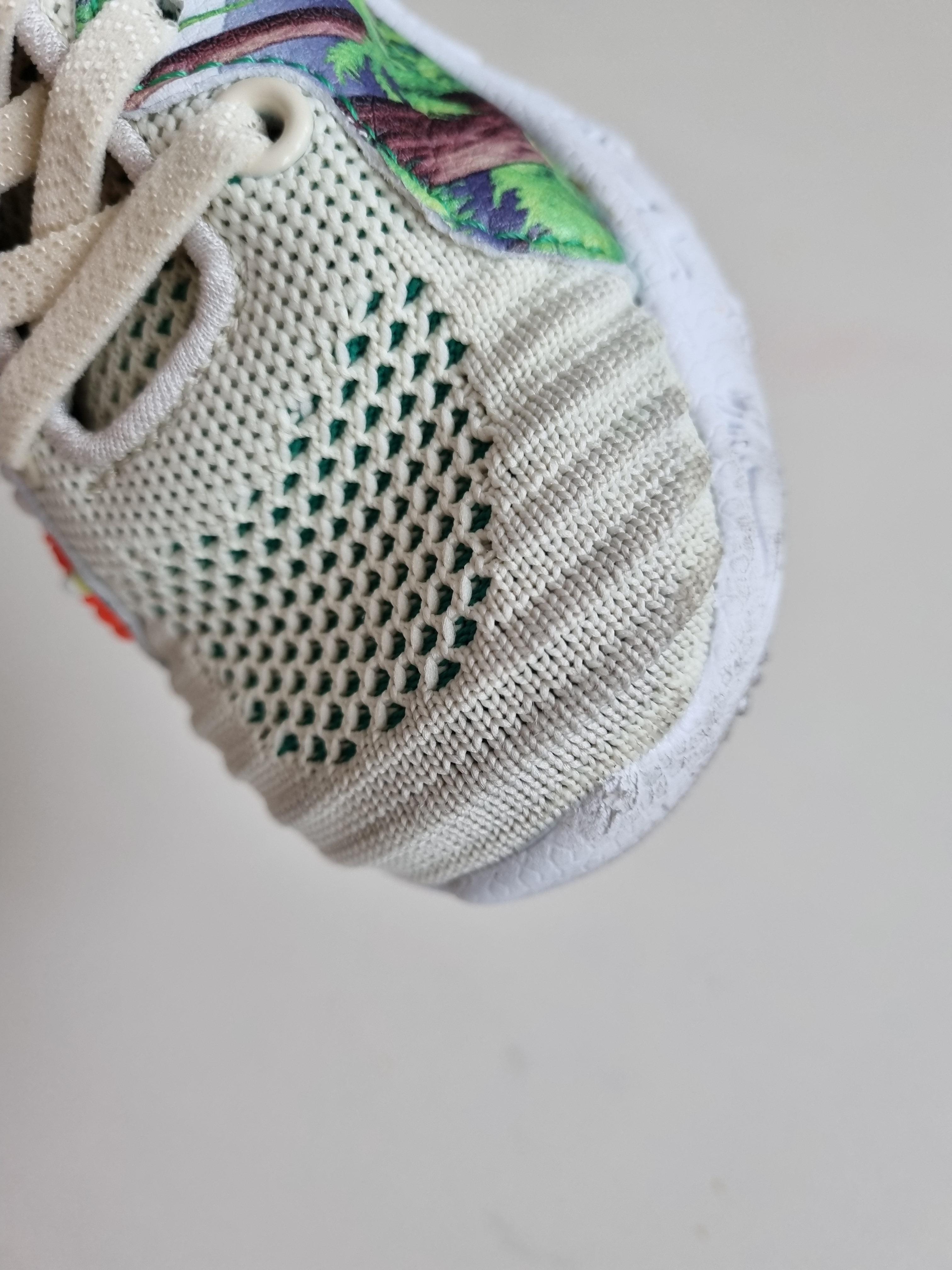 디자인 : 공룡, 신발 하단 불 들어옴, 아주 하얀색은 아닌 베이지라 때 타도 티가 덜 남. 기존에 신던 운동화들보다 목이 위로 올라와서 아이가 살짝 답답해하는 느낌 있었음