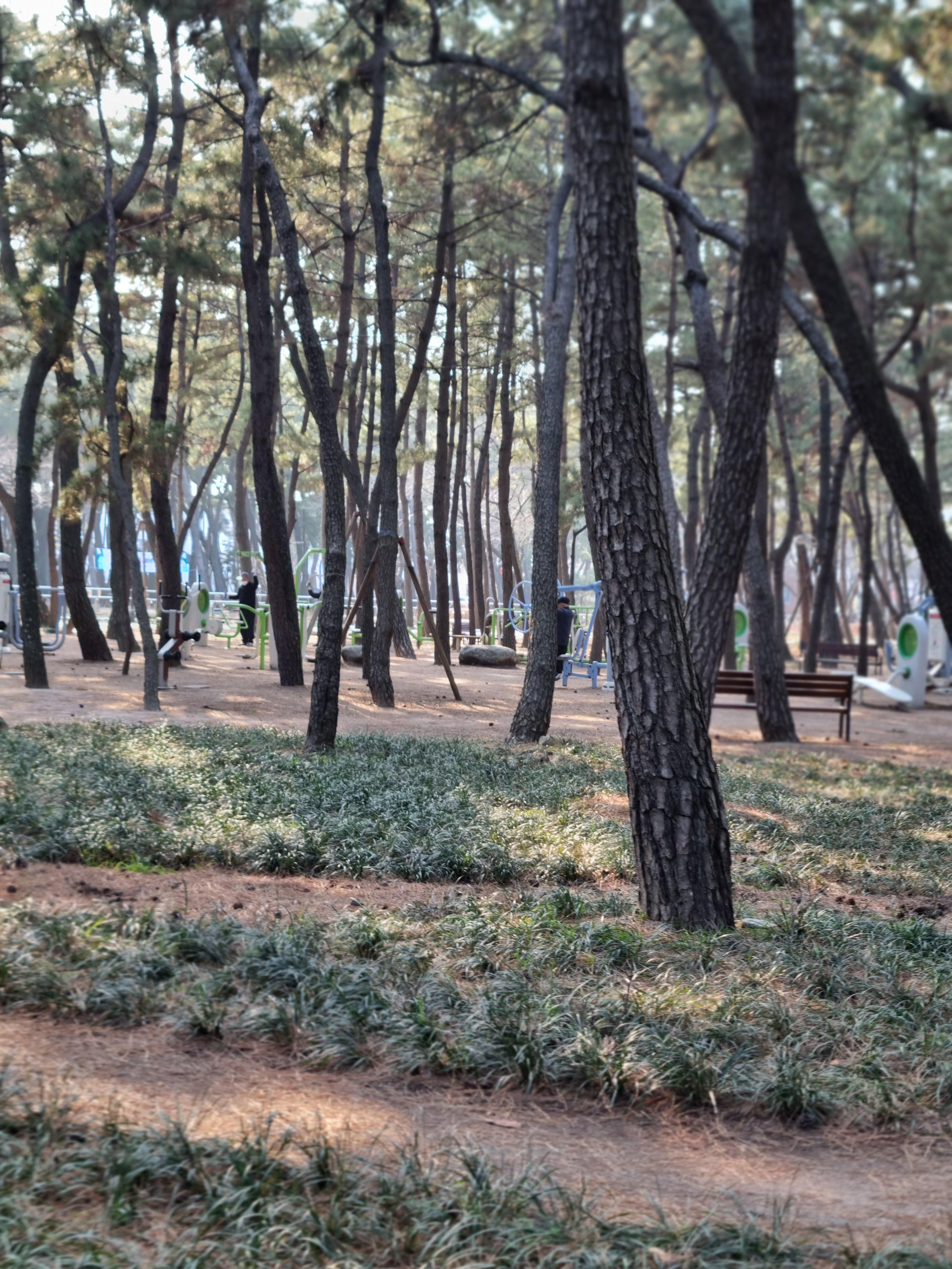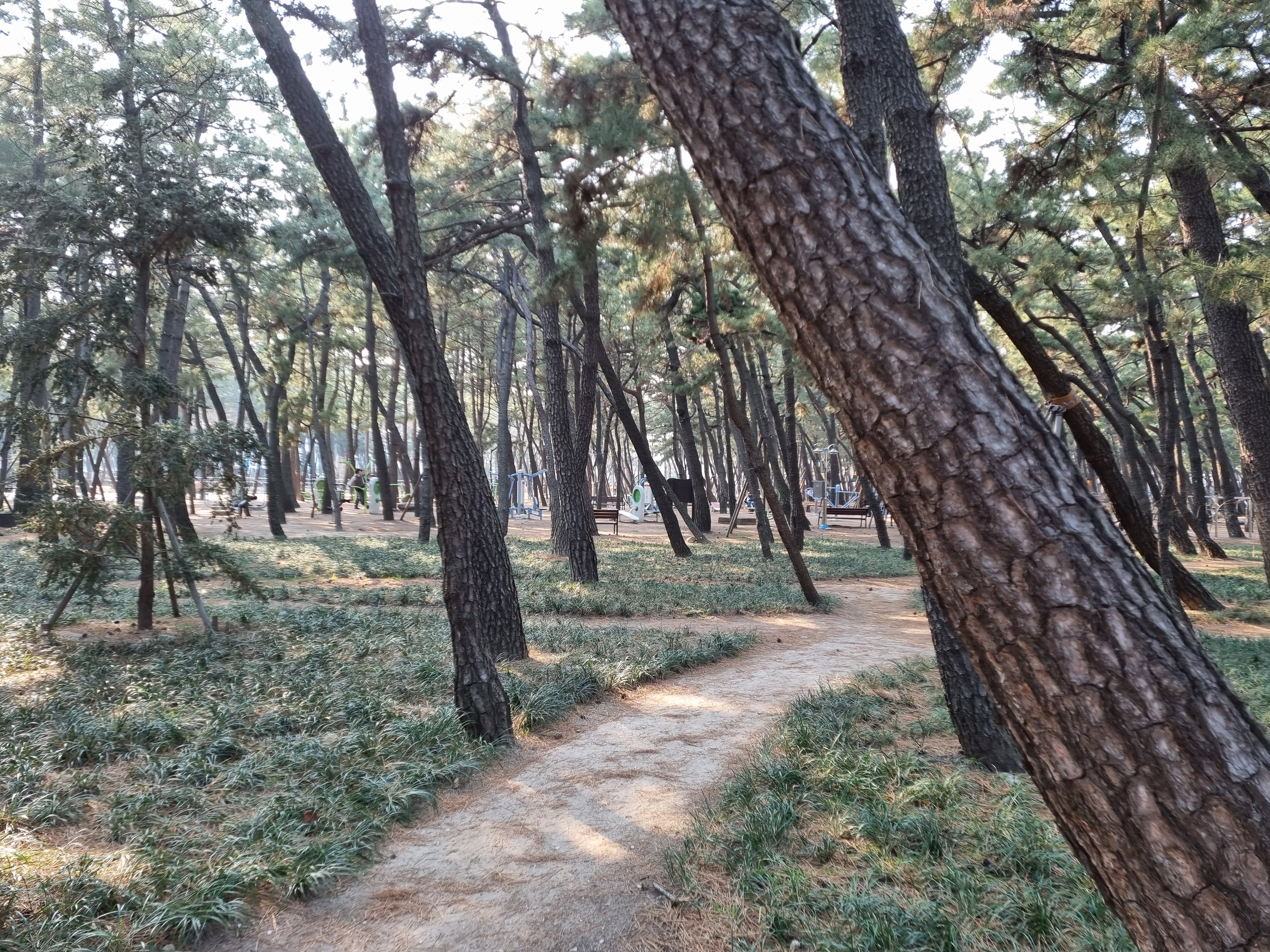 소나무 숲 안에 이렇게 운동시설들이 잘 갖춰져 있어 몸도 풀겸 이용하시는 주민분들이 많이 계셨어요.