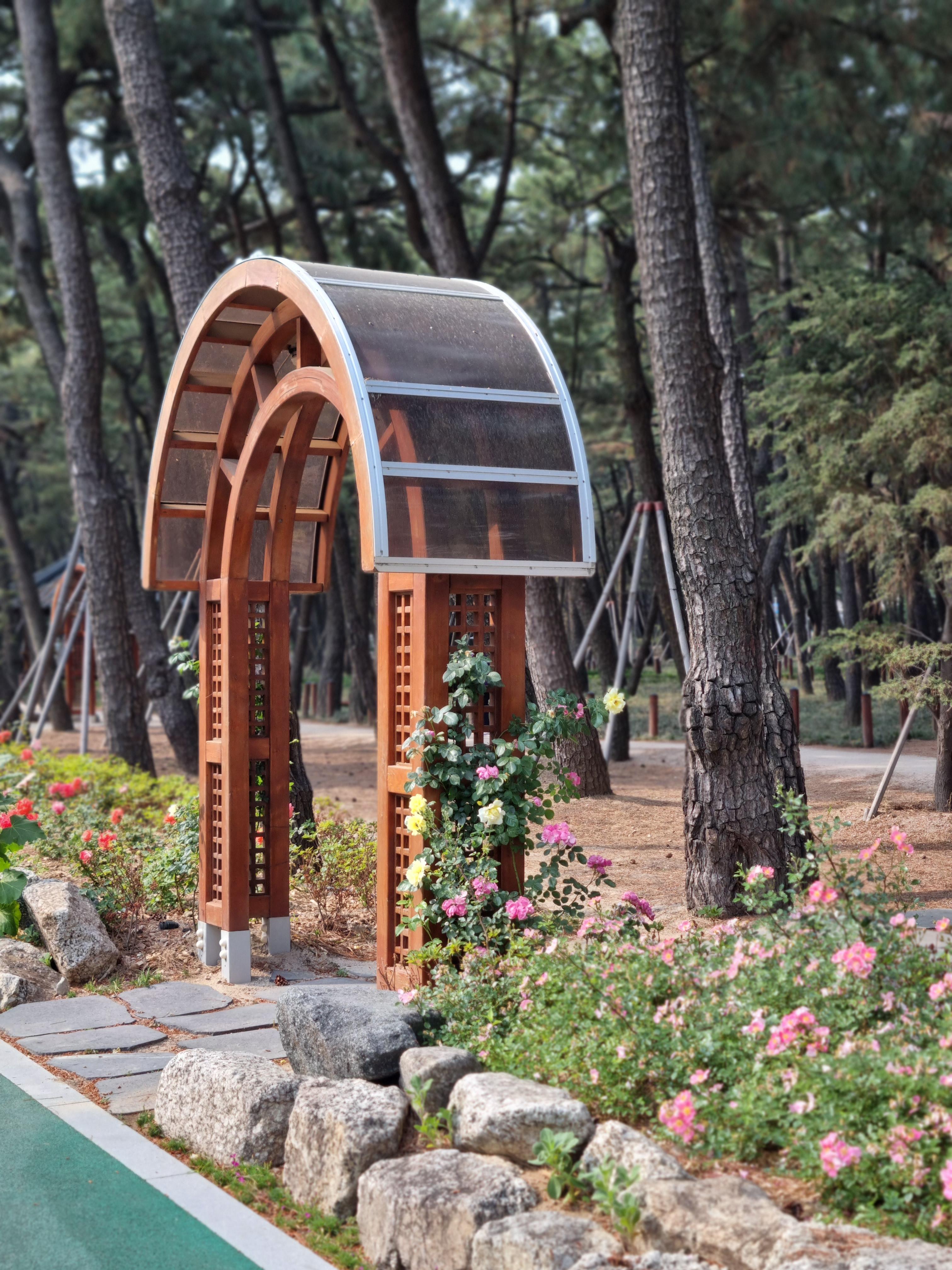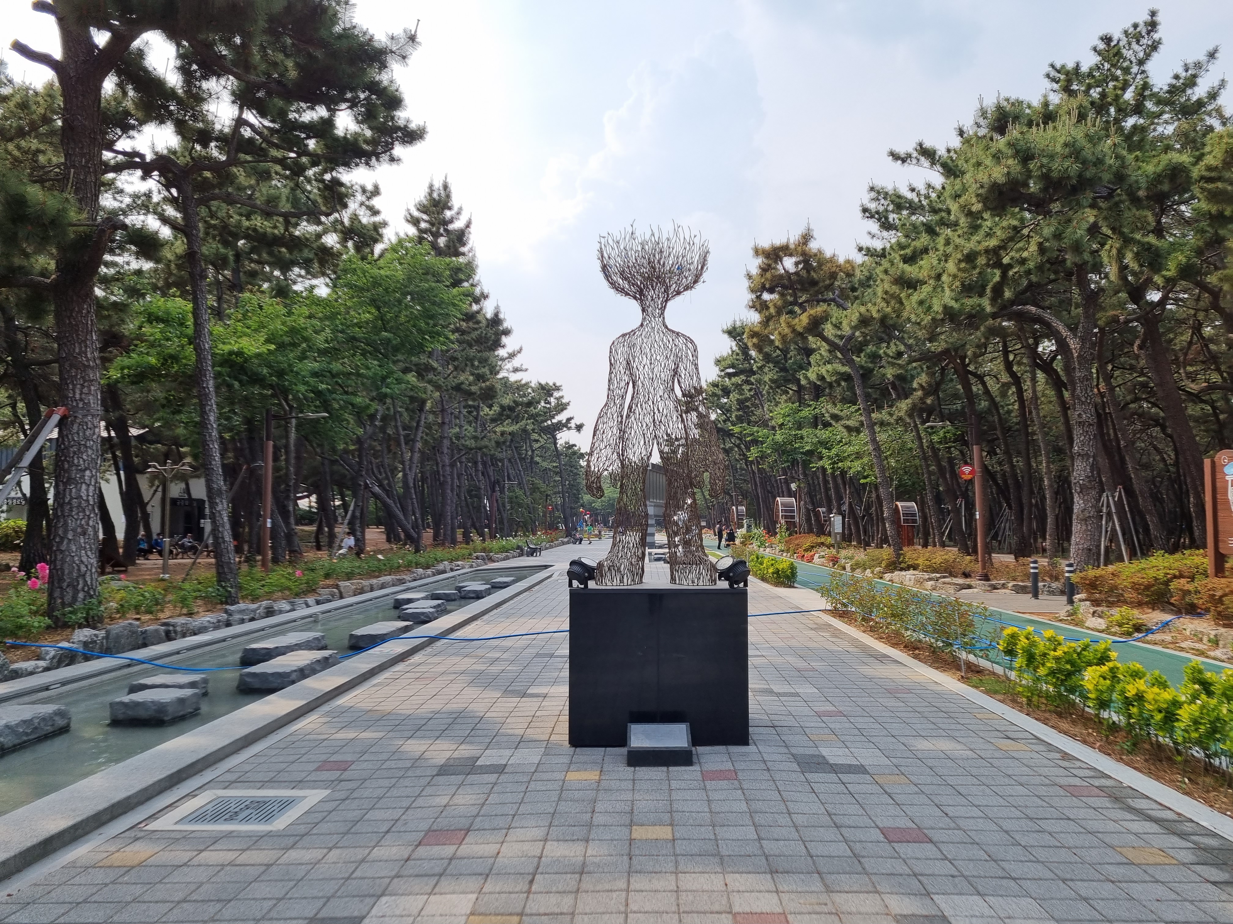 송림테마거리에서 눈에 띄는 점은 무엇보다 잘 관리된 소나무 숲, 스틸아트 구조물, 도심지의 시원한 공원이라는 점들이었어요.