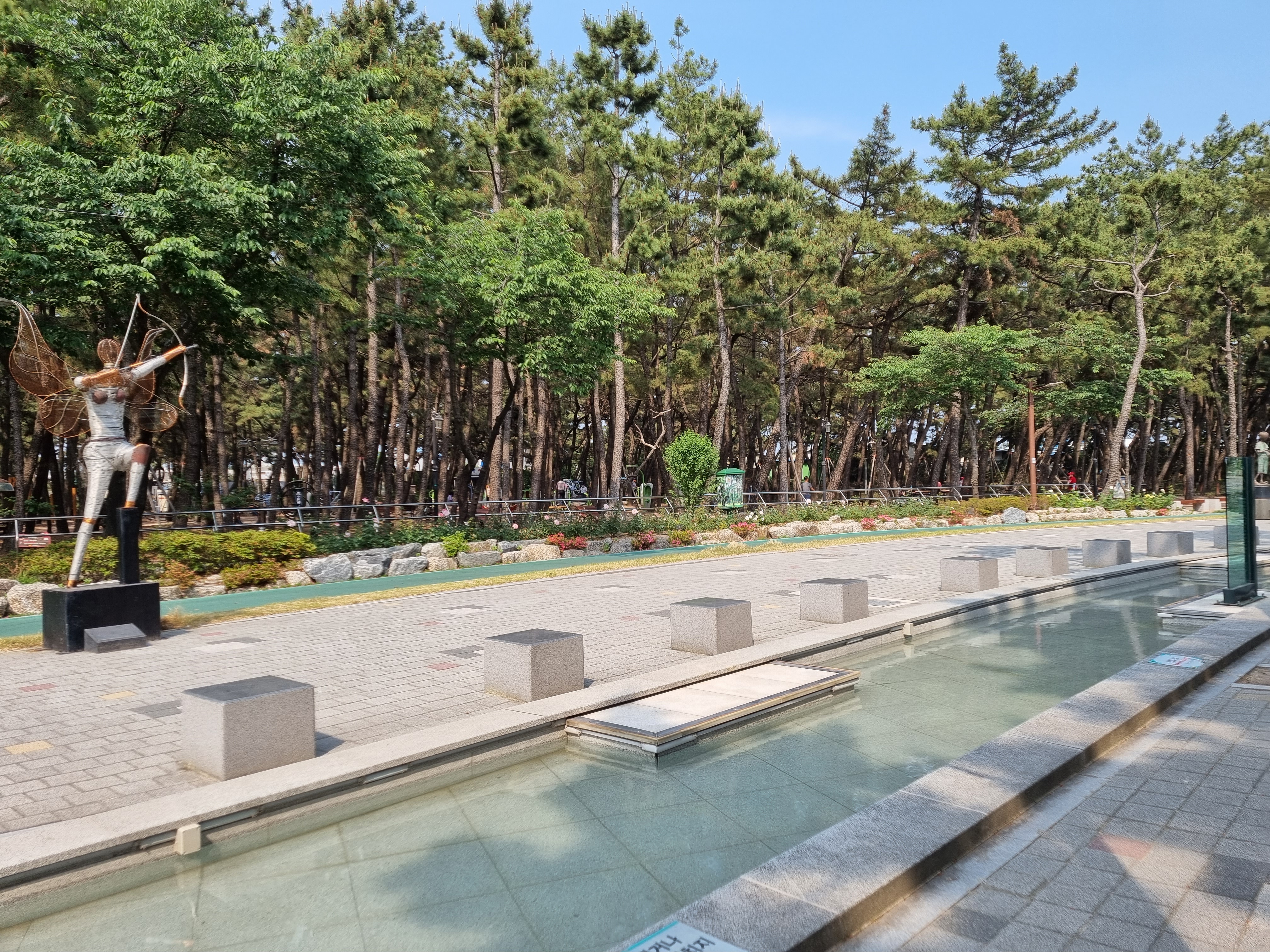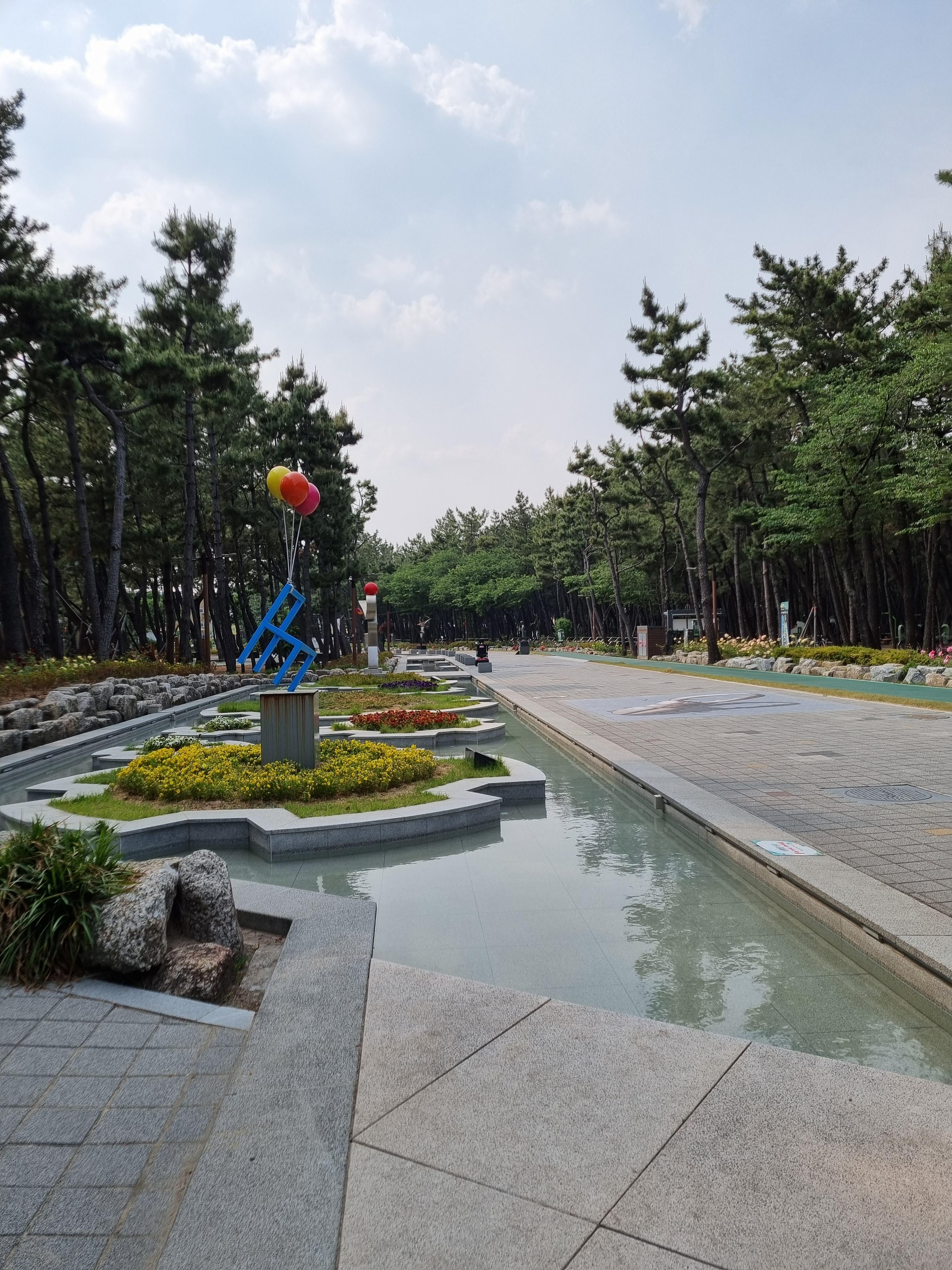 곳곳에 소나무가 있어 그늘이 많고(산책하기 좋음), 수질 정화 시설 및 음수대 및 발을 씻을 수 있는 곳이 있어서 애기들이 놀고 물놀이하기도 좋아보였어요!