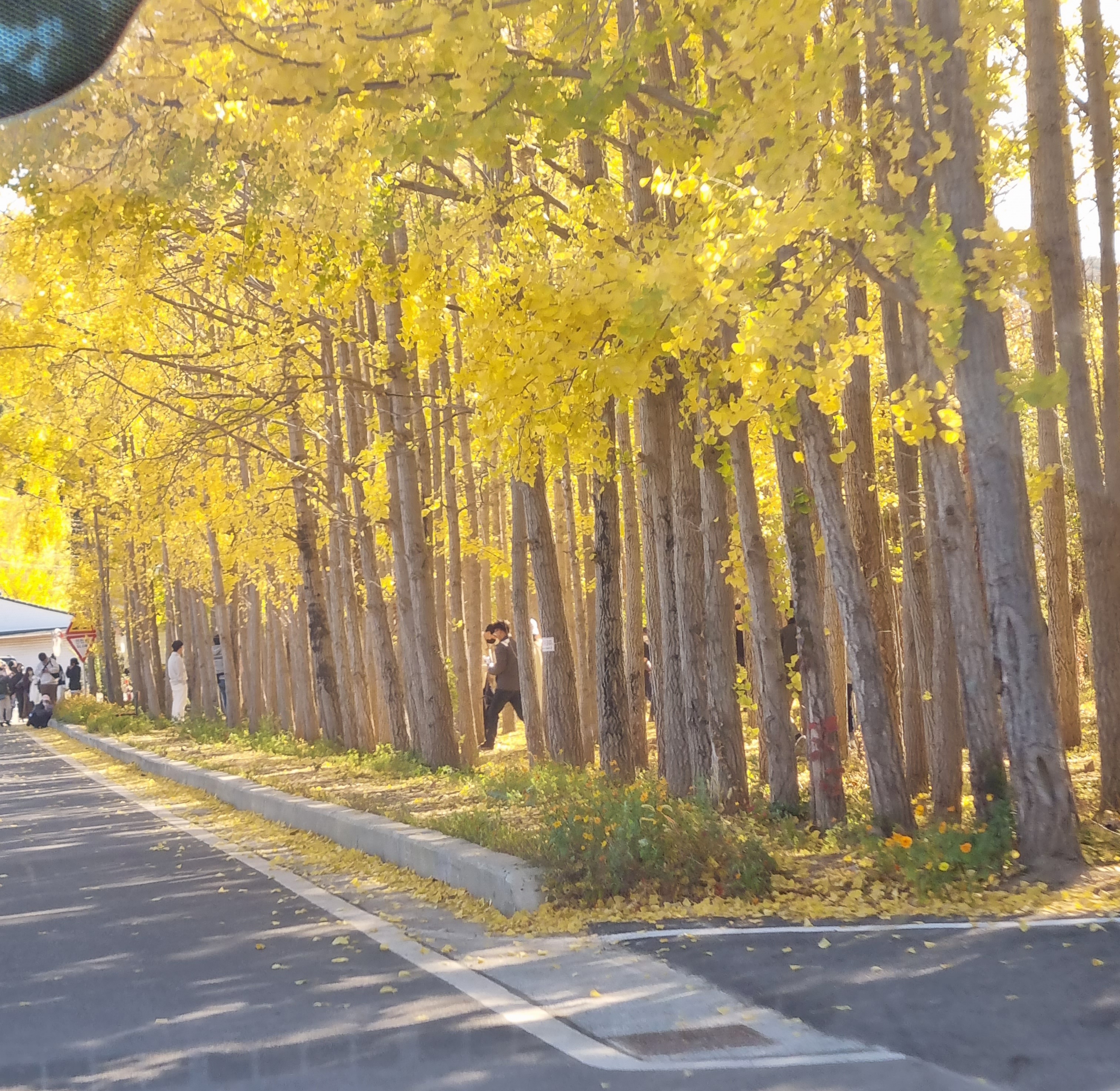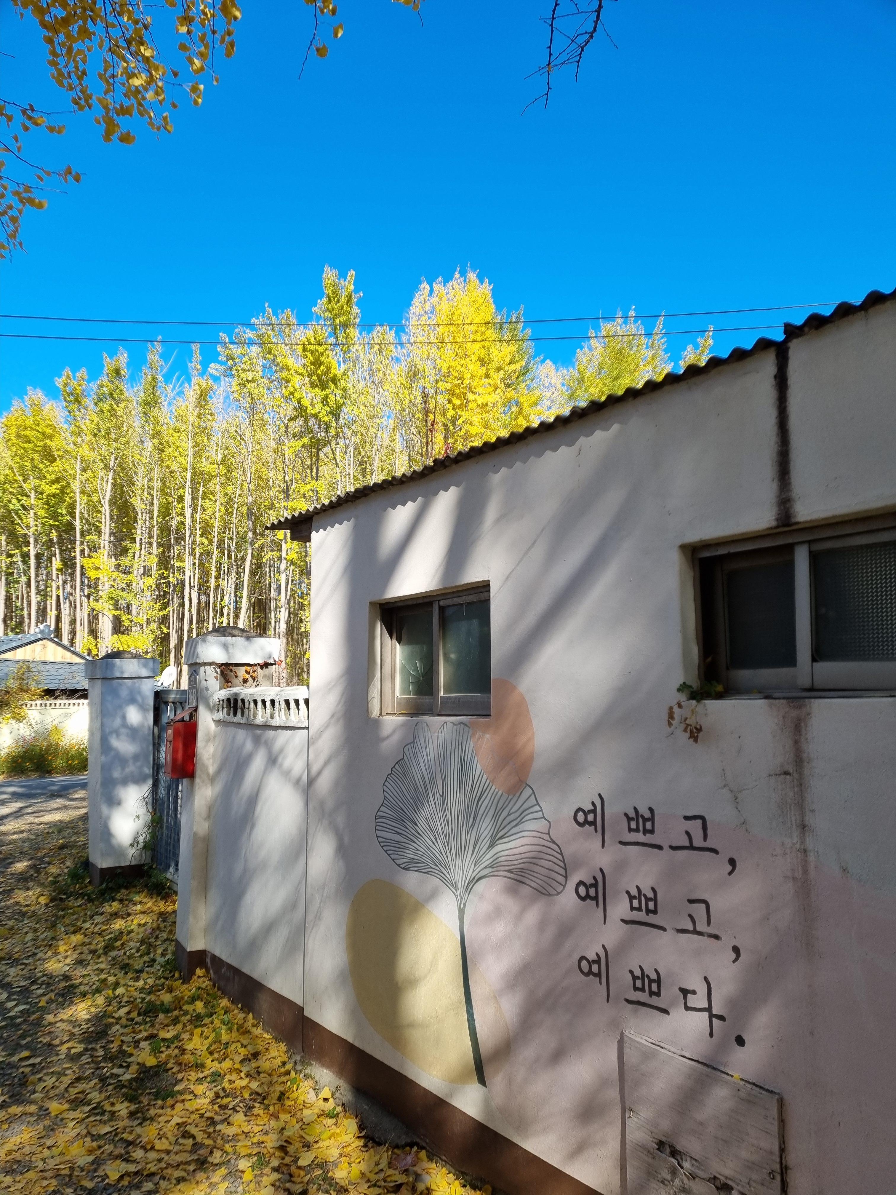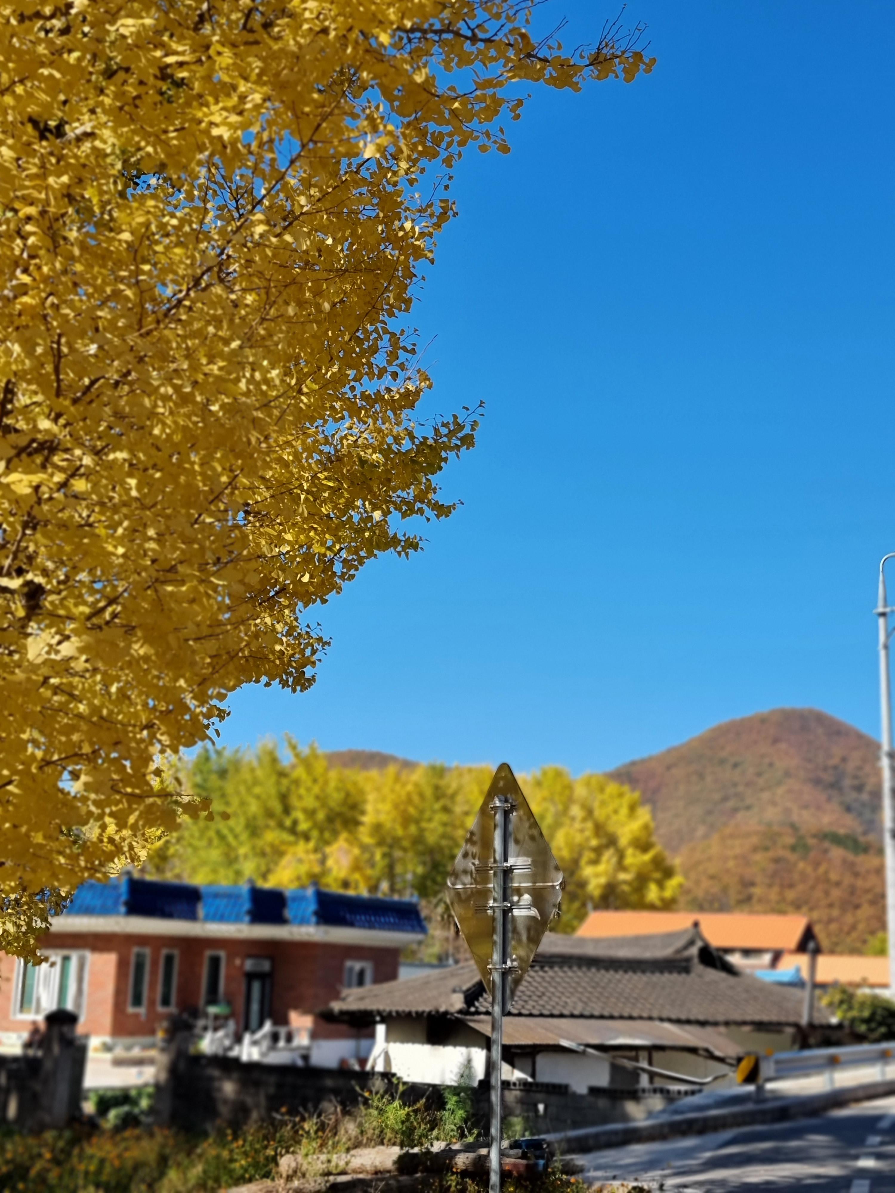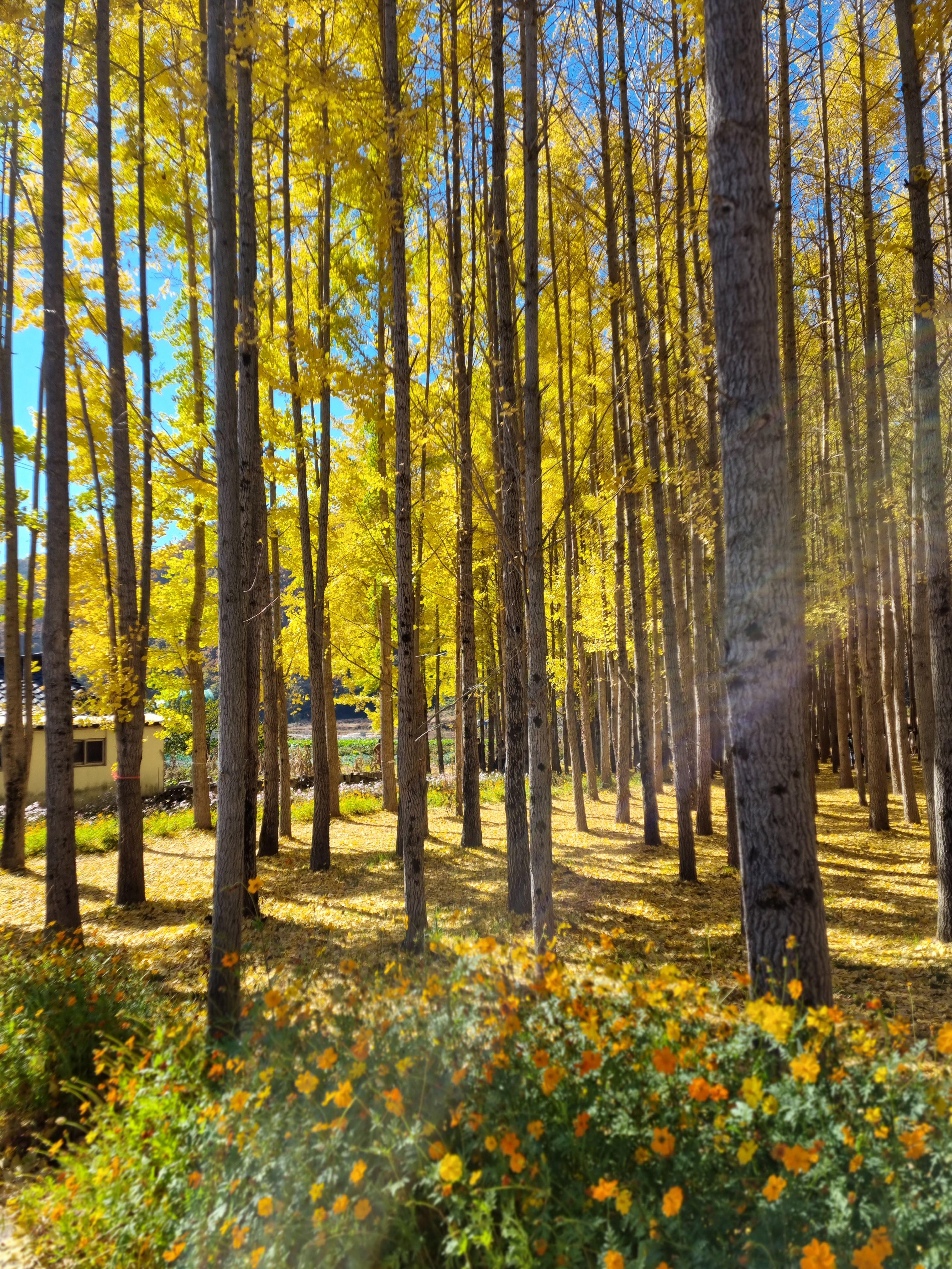 서리가 내려서 은행잎이 다 떨어져도, 도리마을 숲은 장관이지만 이왕 방문하시는 거 가지에 은행잎이 달려있는 가장 예쁜 타이밍에 방문하시기를 추천드려요~