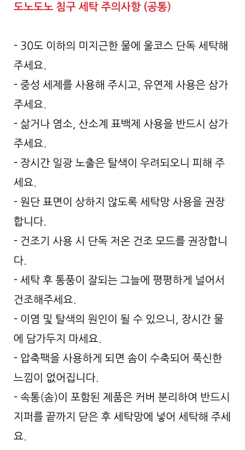 세탁 및 건조를 잘해야 관리 유지도 잘된다는 점!