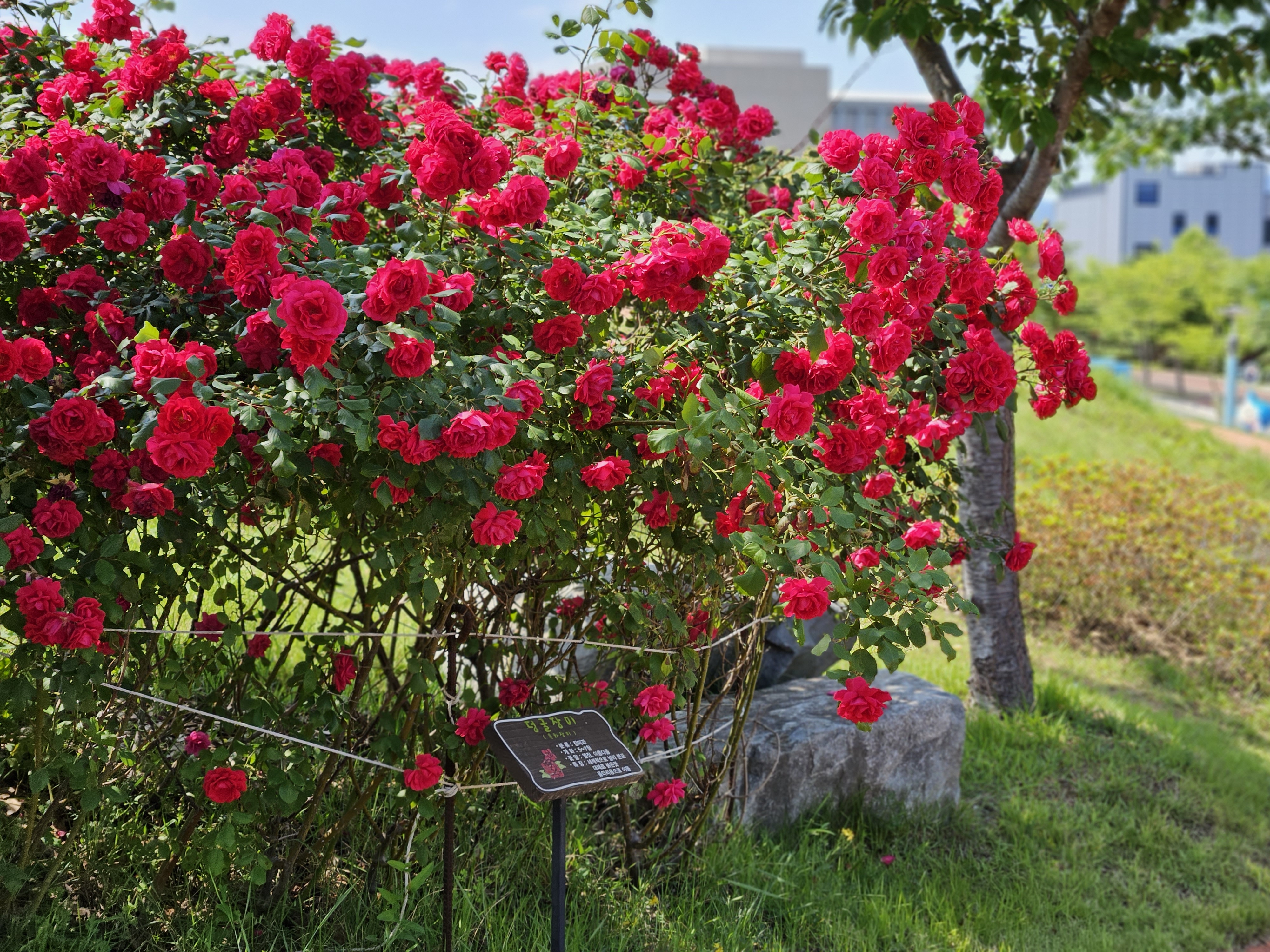 장미공원은 아니지만 장미가 한창인 시즌이라 빨간 장미들이 돋보였어요.
