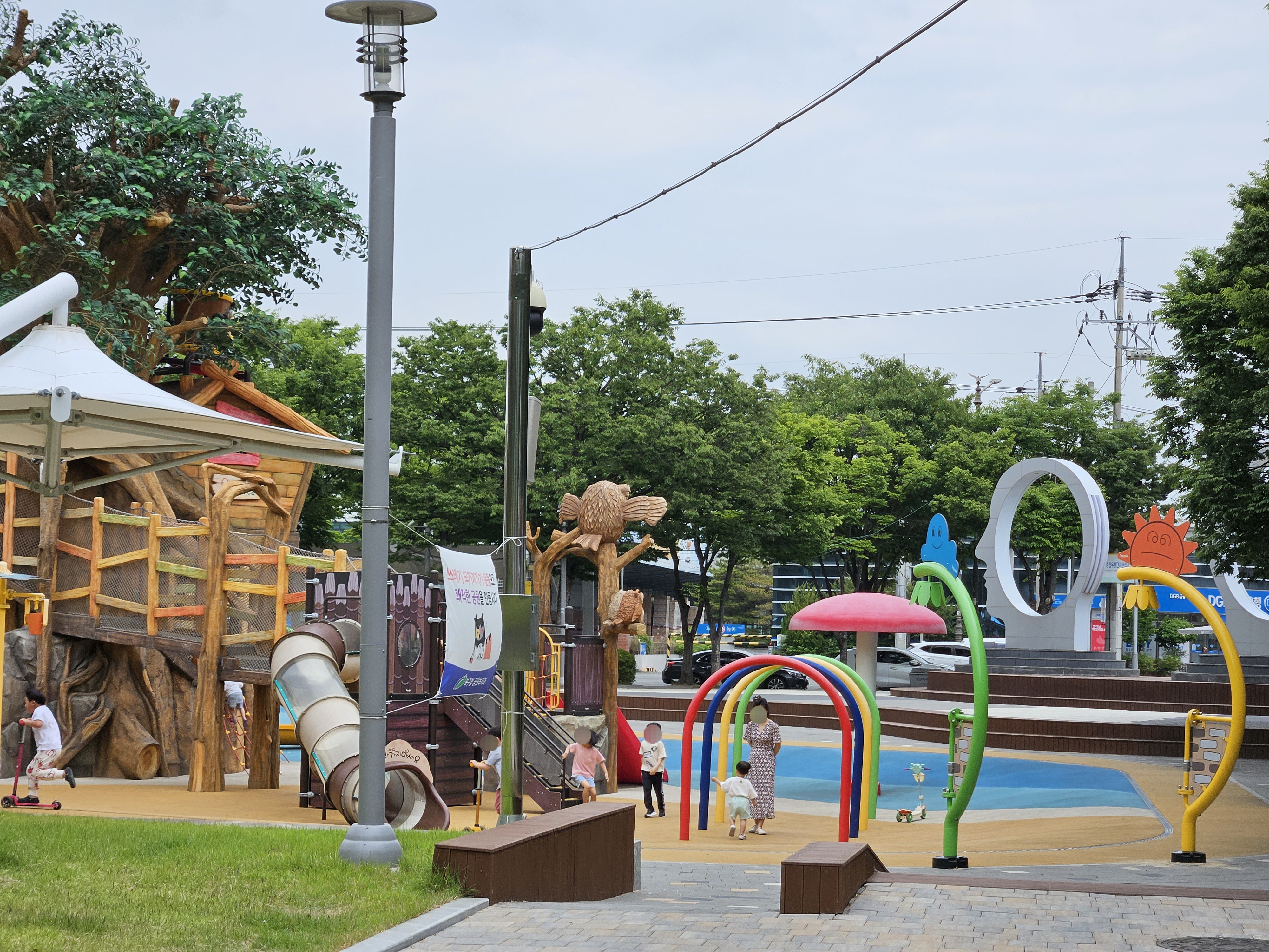 북구에 있는 물놀이터 중 제법 큰 물놀이터. 유통단지공원 물놀이터 🗓7월 5일 ~ 8월 25일 ⏰️ 11:00 - 16:50(50분 가동 10분 휴식) ✔️휴장일: 매주 월요일, 우천 및 기온저하(28도) 장점일단 놀이터