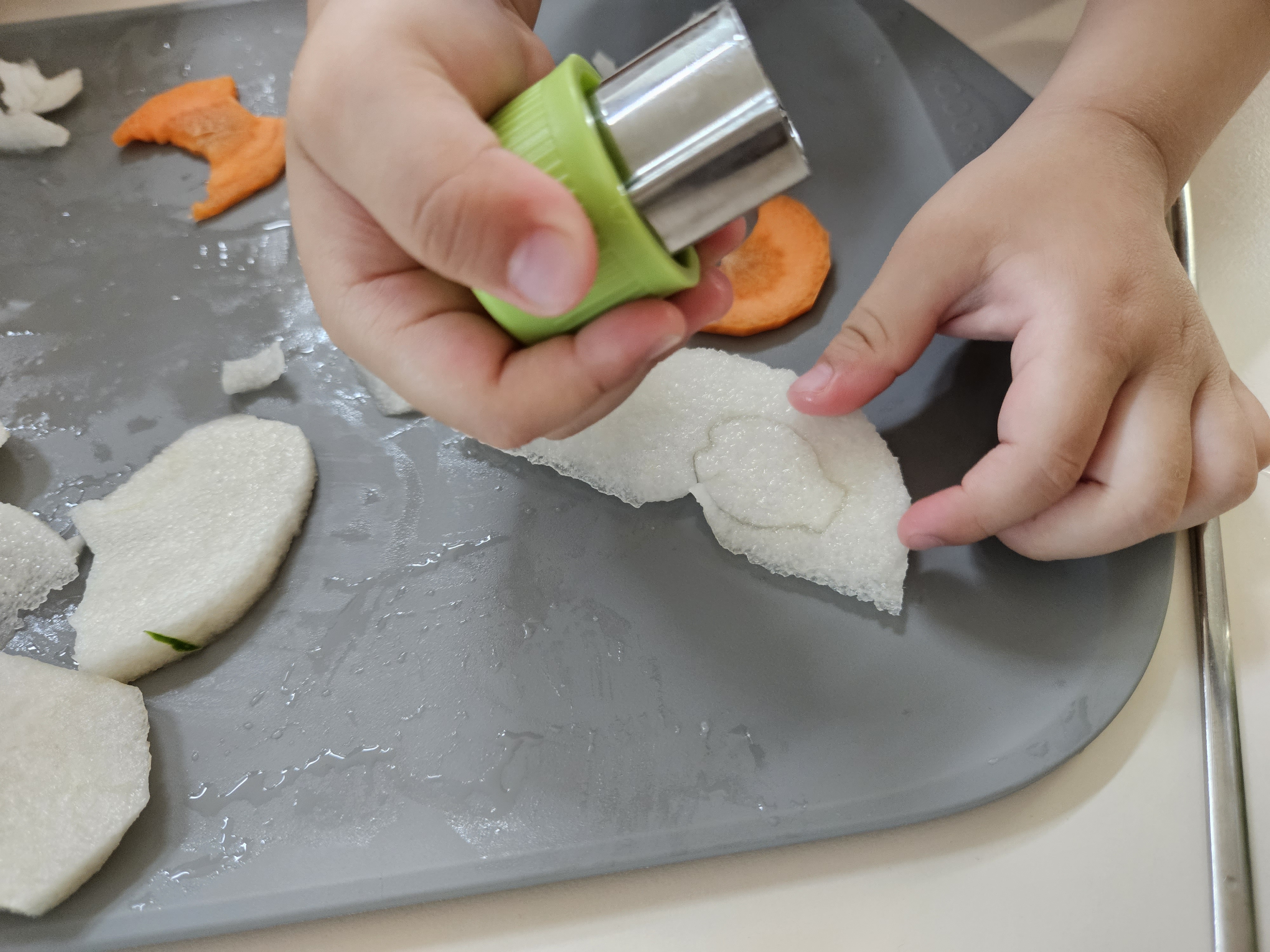 아래처럼 야채가 쿠키틀에 끼는 경우가 생기는데,