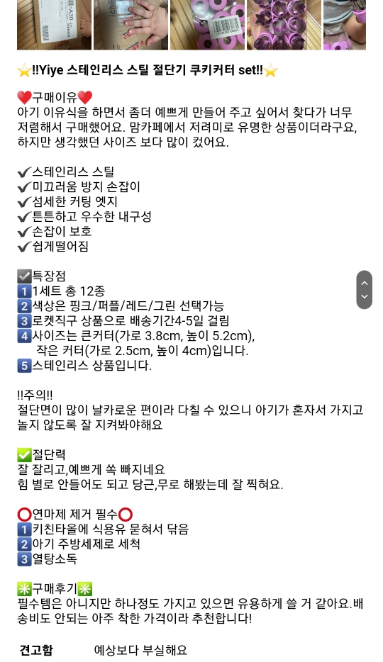 아래는 구매 및 사용 시 도움 되었던 리뷰 내용