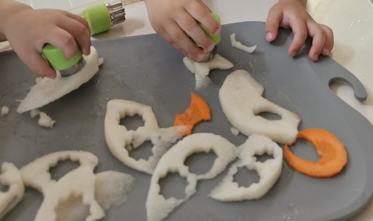 카레, 국, 등 각종 야채과일을 썰어 넣어야 하는 요리 및 쿠키 만들기까지 아이를 다양한 요리 만들기에 참여시키기 좋은 육아템인 것 같아요! 게다가 간단한데 비주얼은 그럴듯하죠!