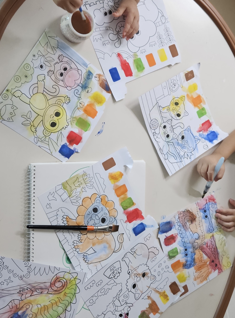 [다이소육아템추천] 미술워크북; 물감컬러링, 스티커꾸미기