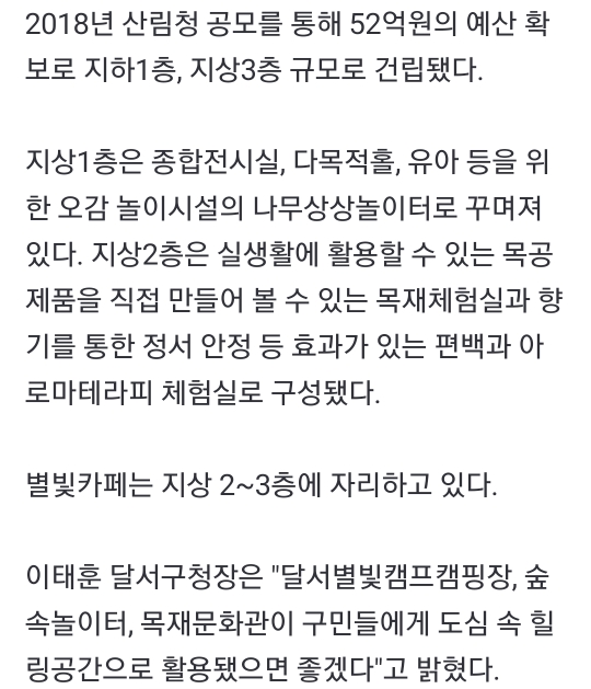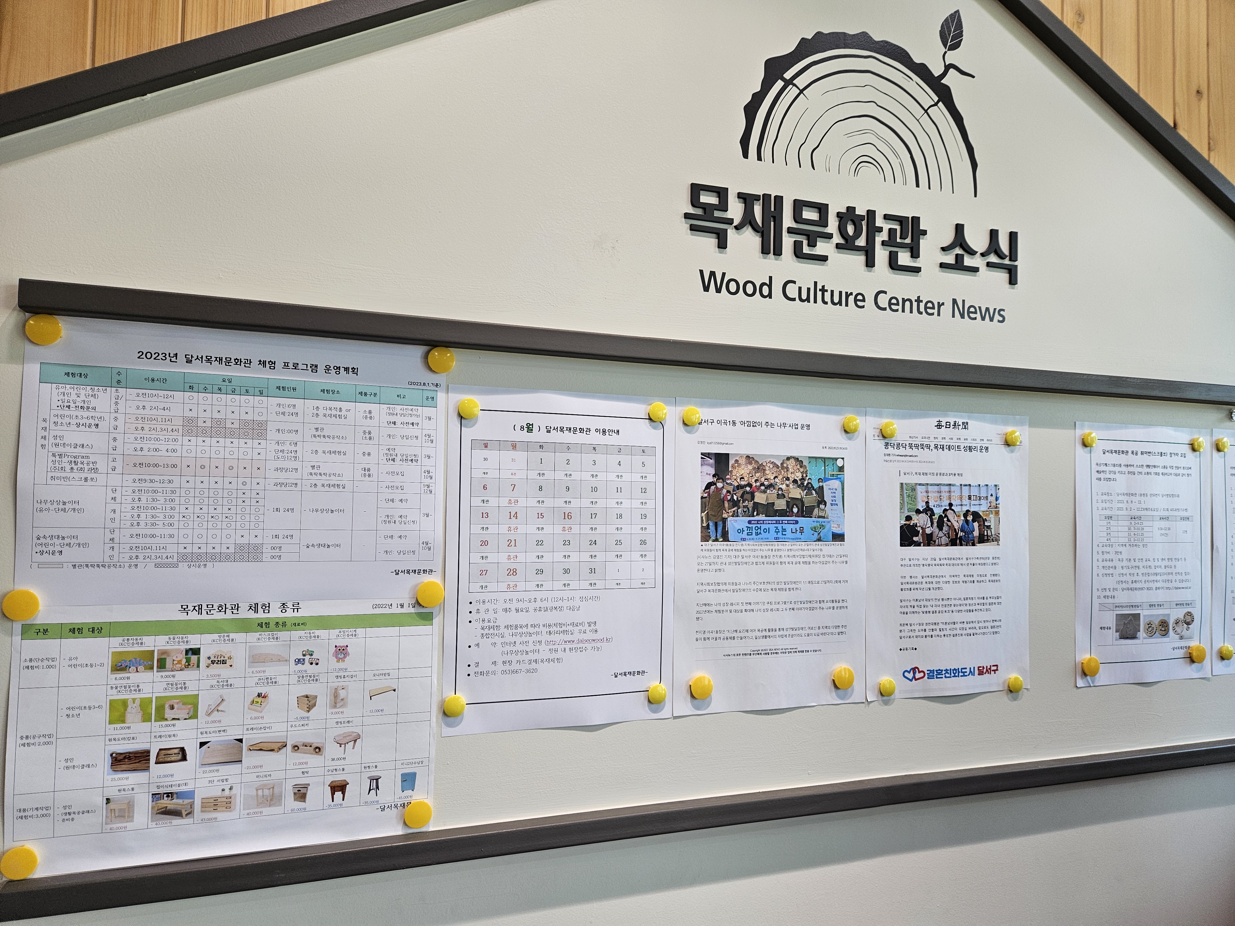 달서목재문화관은 목재와 목재제품에 대한 다양한 정보와 체험기회를 제공하고 목재문화의 활성화를 위해 조성되었습니다. 전시, 교육, 목공체험 등을 제공합니다.