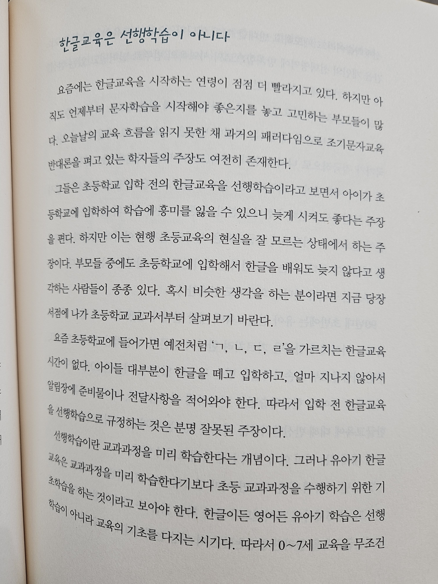 <한글 교육은 선행학습이 아니다>