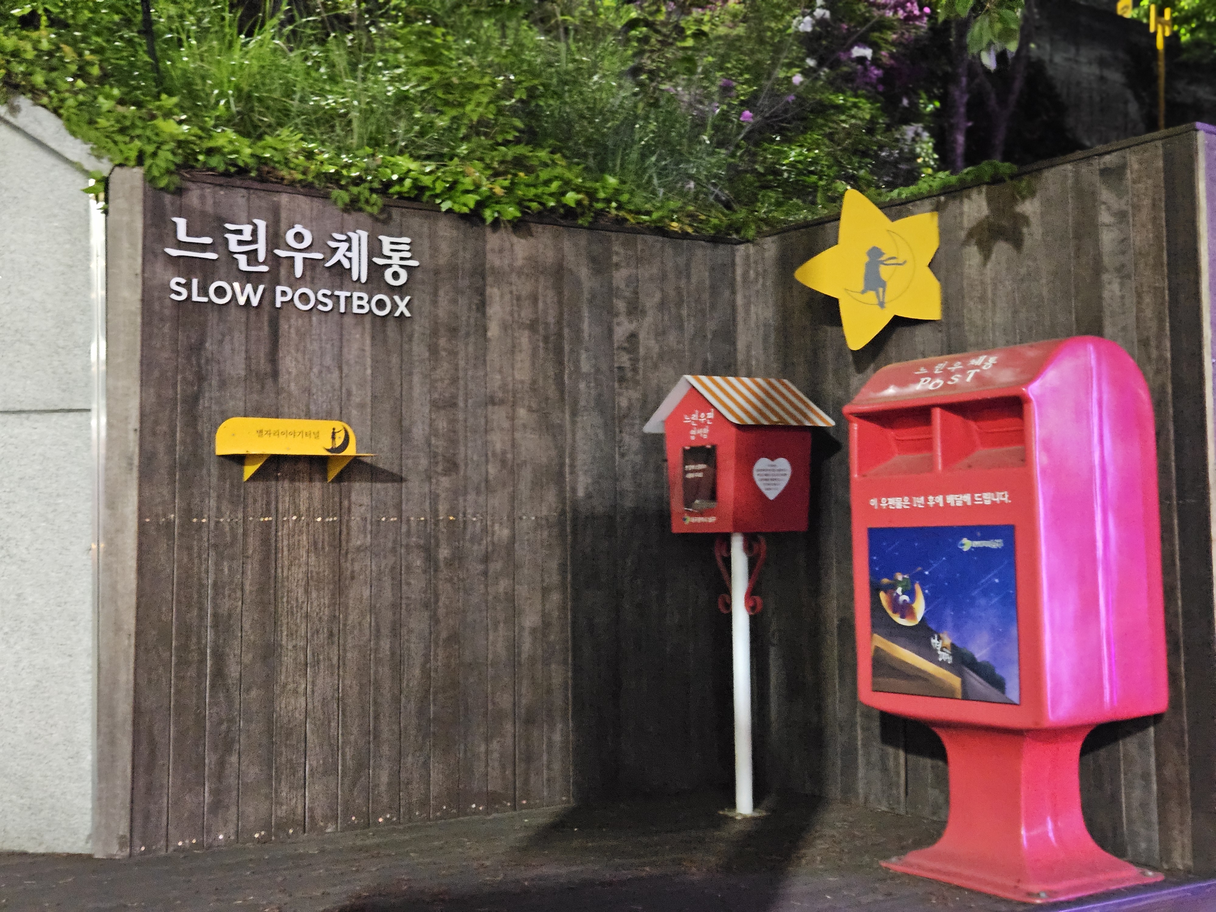 1년 후에 배달이 된다는 우편함에 쓴 엽서를 넣어주었어요.