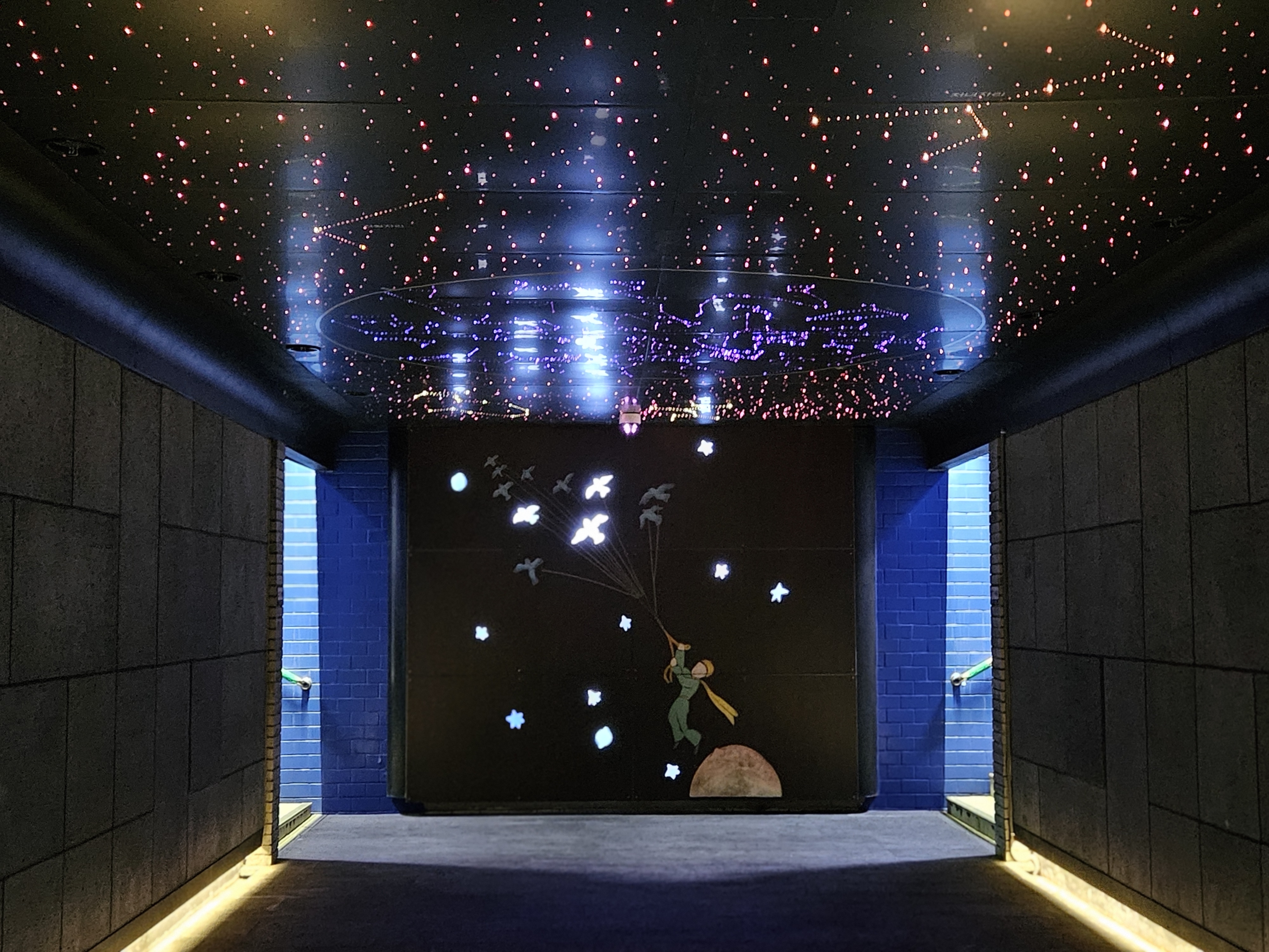 터널 맨 끝에는 어린왕자가 새를 잡고 떠나는? 벽면이 있어요.