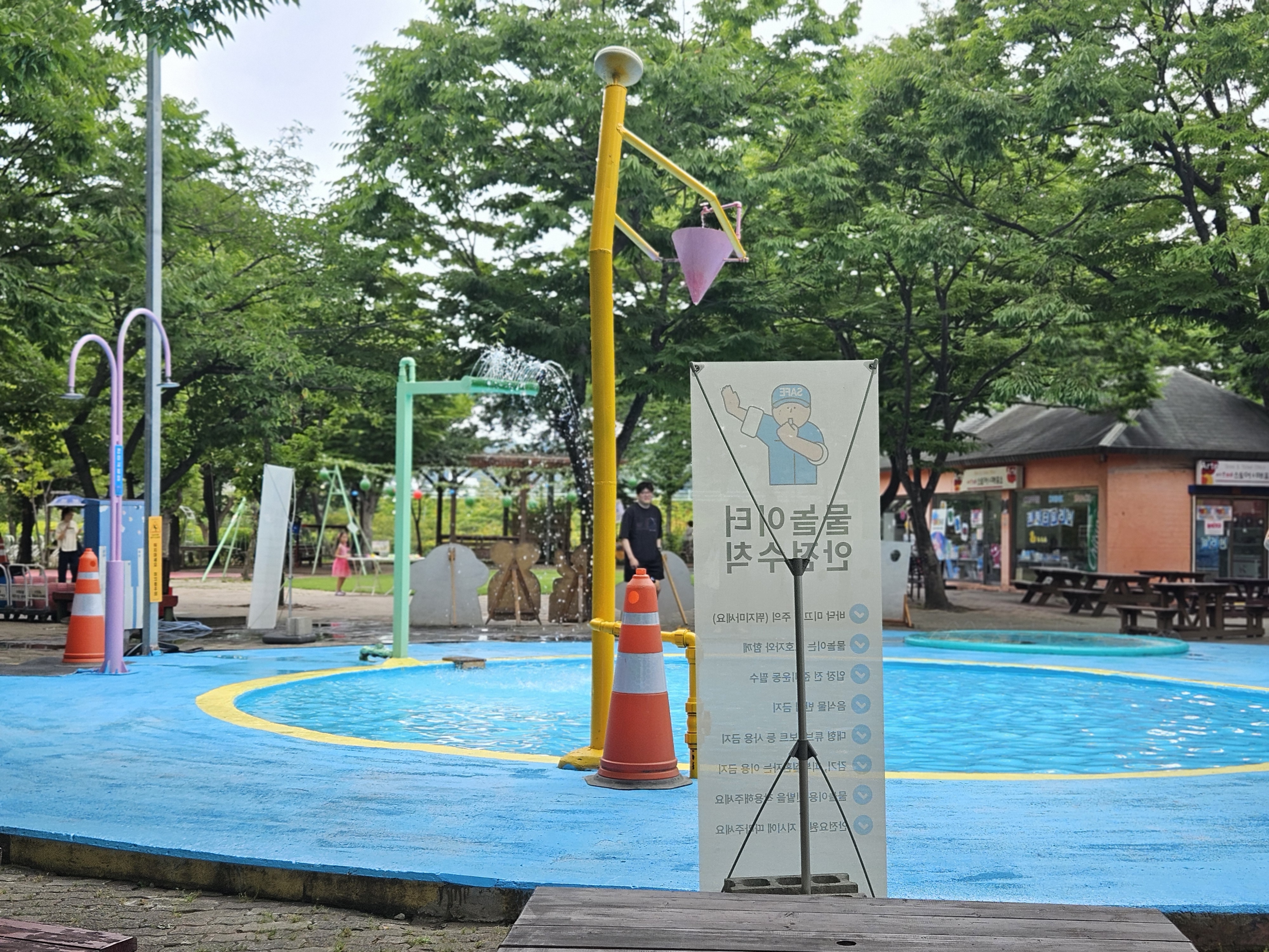 발만 담글 정도의 낮은 높이의 물놀이장 하나.