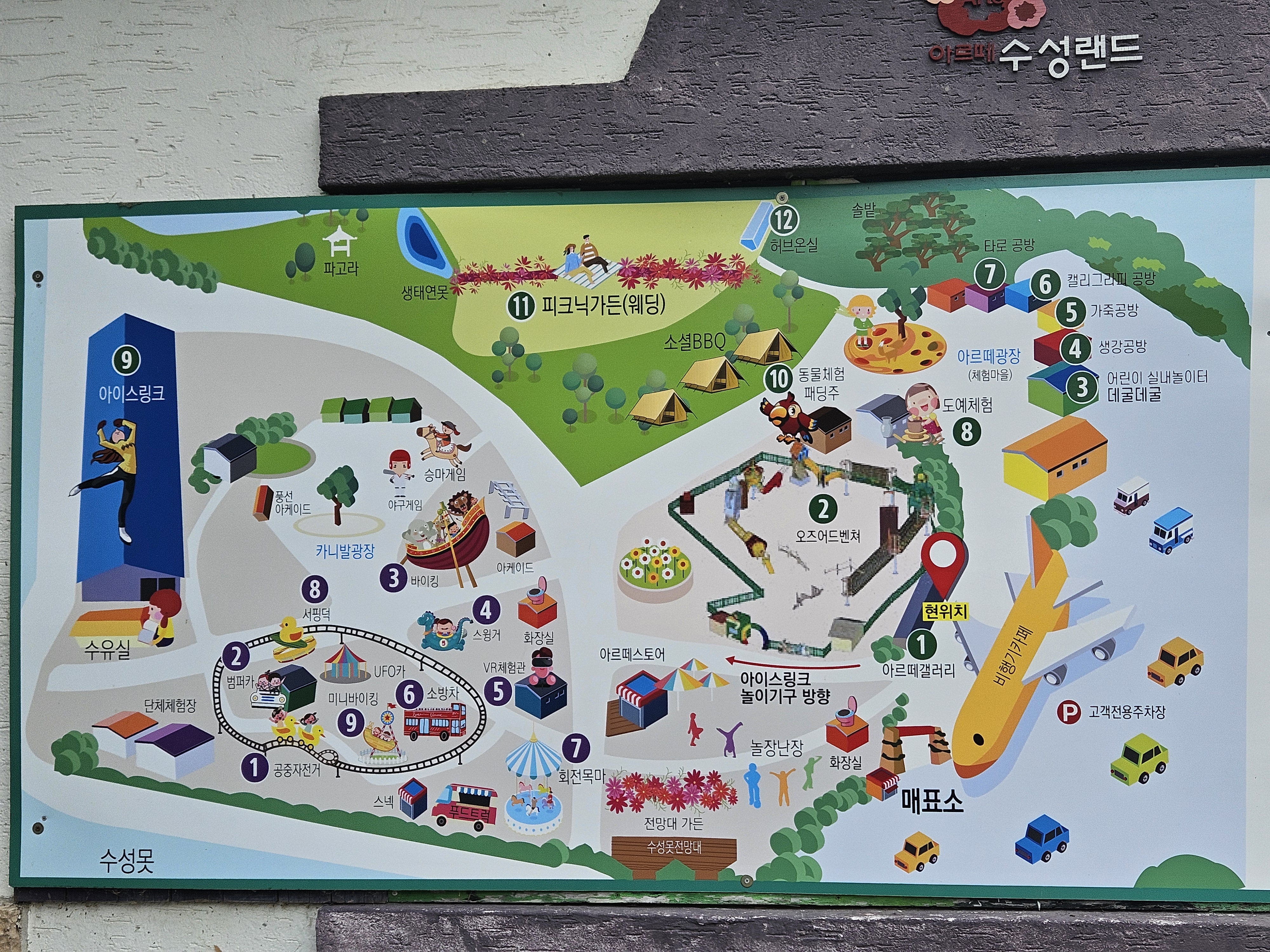 요금 인상을 모르고 방문해서, 어버버 하다 입장료 + 추가 놀이기구 1회권(수성랜드 내부 매점에서 구매)을 끊었더니 5000원 + 추가금 4000원이 듦😇🤑이런 비싼 놀이기구 이용료....