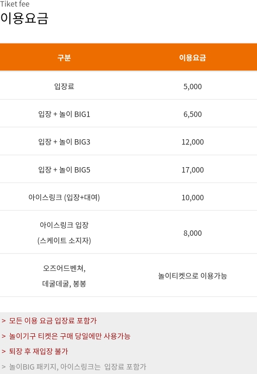 아이들은 놀이기구이용이 포함된 입장권으로 끊어야겠다!