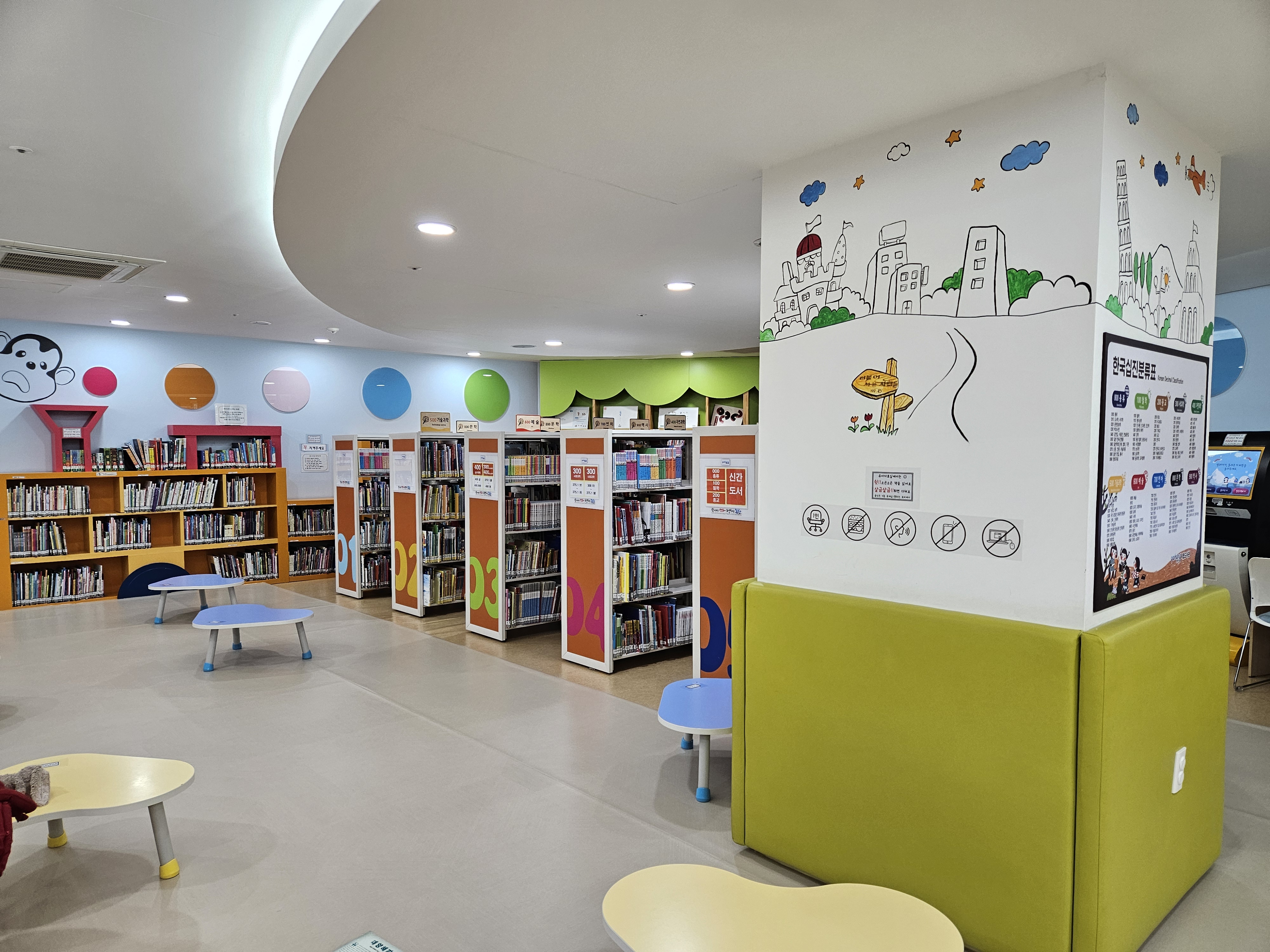 포은중앙도서관 📍🚗⏰️ 주차는 지상, 지하 가능하고 1시간 무료, 30분 초과 시 500원이 추가됩니다. 1층에 위치 실내라 아기/아이와 가기 좋아요. 유아자료실아이들 공간인 만큼 알록달록하게