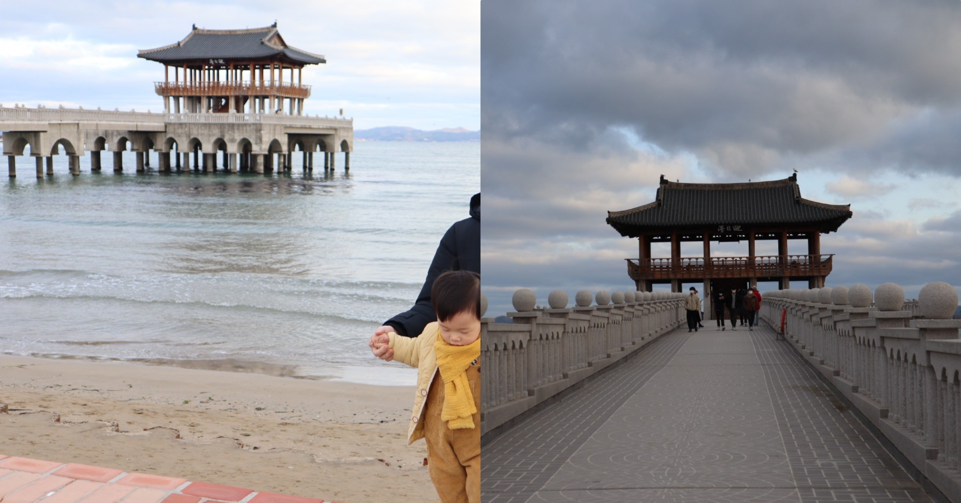 영일대 누각으로 이어지는 다리 위를 걸어가거나 누각 위에서 펼쳐진 바다를 내려다보는 재미가 쏠쏠해요~ 유모차 가능입니다!