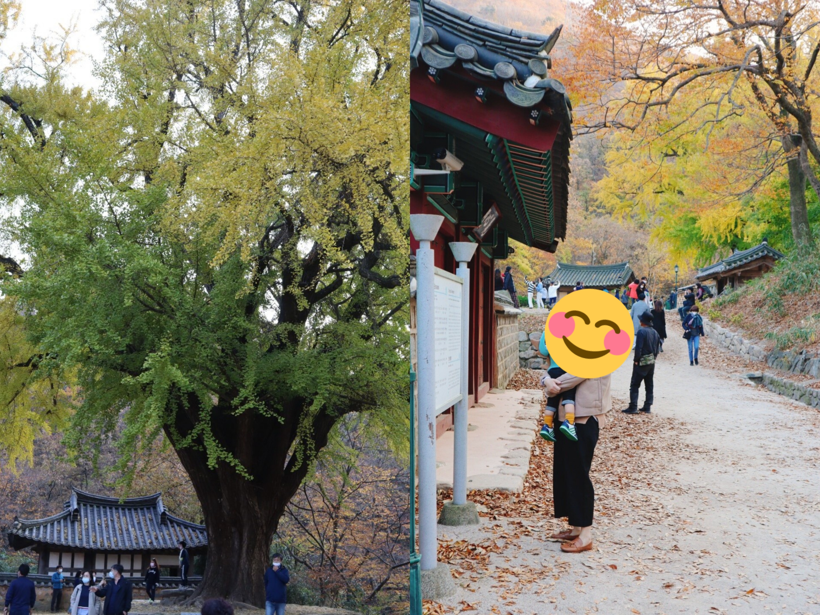 산 속인데 나무가 커서 그런지, 웬만한 곳은 다 노랗게 물든 11월 초에 가도 큰 은행나무 색은 여전히 초록색입니다. 👉 (주의) 은행나무가 다 노래진 때인 11월 말에 방문하면 너무 어린 아기에게는 추운 날씨일 것 같아요!